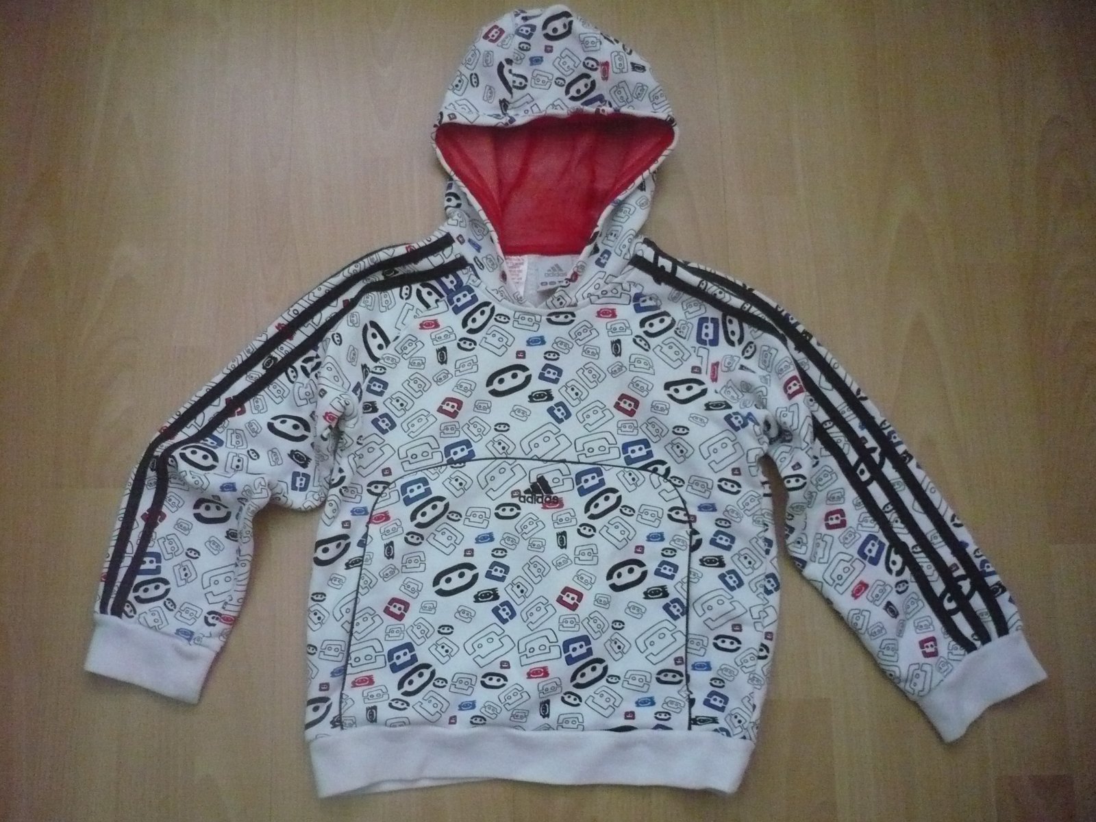 Nosená mikina v dobrom stave, sem tam žmolky, pár minifliačikov pri nosení nevidno. Vpredu klokanie vrecko. 7-8rokov