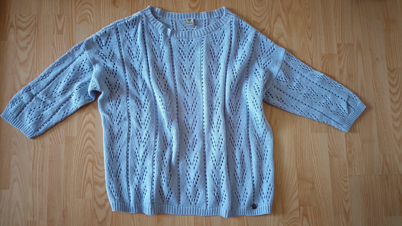 Kvalitný širší pulóver v super stave, farba ako na 2.fotke, rukáv 3/4, dĺžka 57cm, podpazušie 59cm