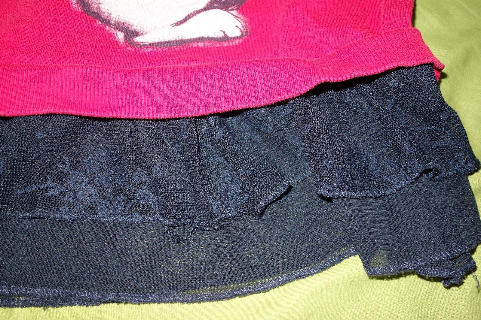Pekna mikinka v dobrom stave. Je taka predlzena a na spodku ma krajkovy volanik.