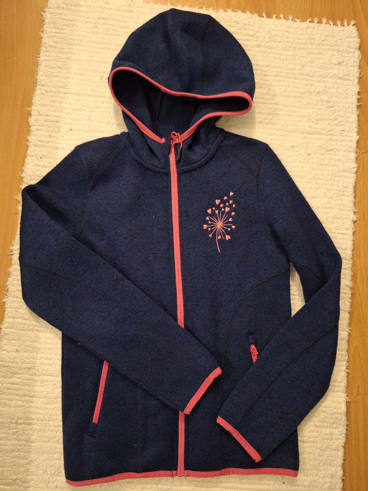 Veľmi pekná bundička mikina Kvalitná tepla Chybička vid foto niečím zalepene lacno Sem tam zmolky samozrejme dá sa odzmolkovat