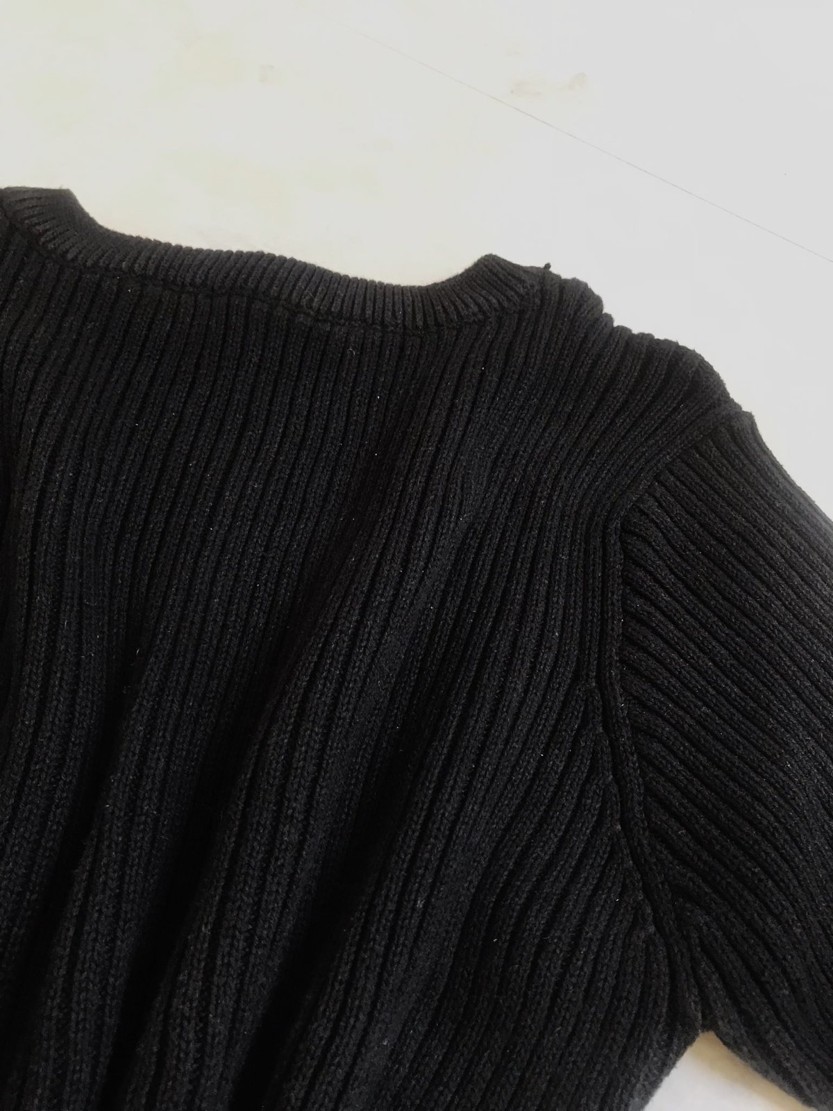 kvalitný pulóver s rukávom po lakeť,hrubší vrúbkovaný vzor,veľmi kvalitná hrubšia cverna, na boku malé rozporky,manžeta na rukáve,dlžka celkom = 55 cm,šírka meraná pod pazuchou = 47 x 2 cm,je to úplet poddá sa v prípade potreby až do 50/55 cm x 2.značka vyfotená,rukáv = 32 cm,vhodné aj na M-ko veľkosť,uvedené je však S,ale rozmery sú väčšie