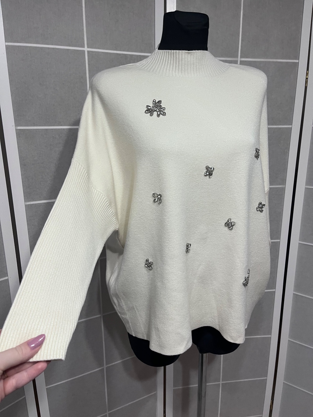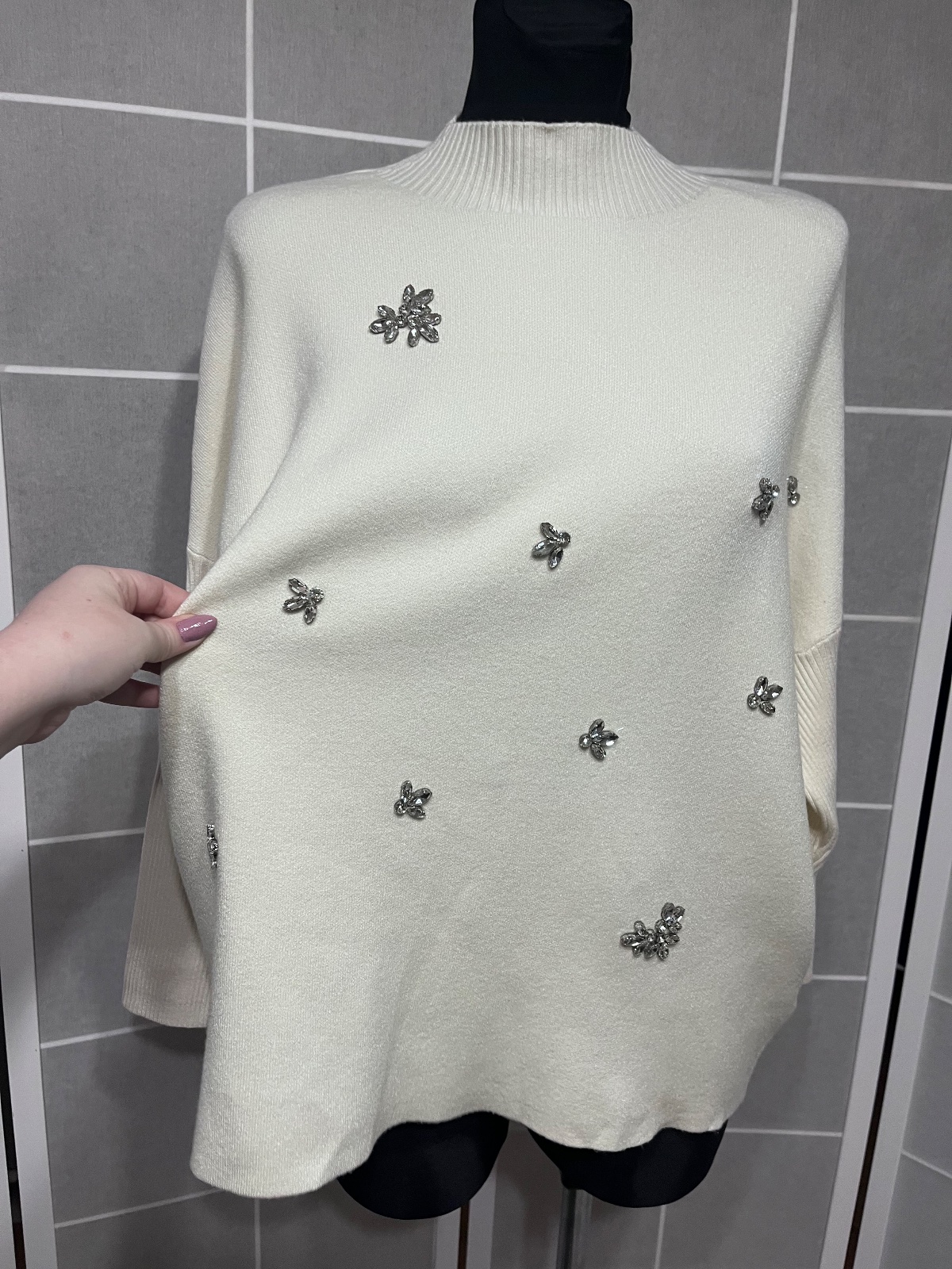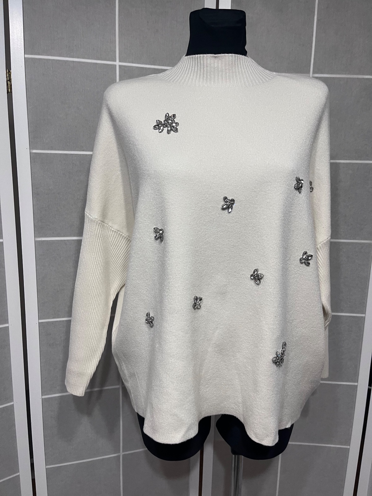 SkladomKrásny nový kremovy sveter s kamienkami