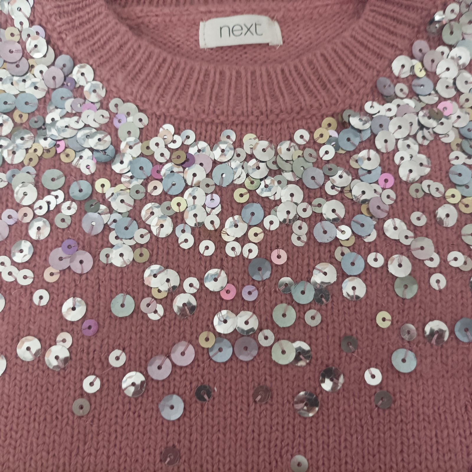Flitrovaný pulóver staro-ružovej farby Next na 4-5 rokov.