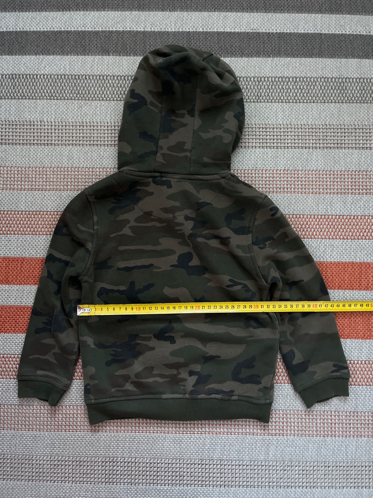 Mikina je v top stave, synova obľúbená, ale nemá žiadne poškodenia, len zmolky z prania Dĺžka 43, šírka 78, rukáv od ramena 36, od krku 43