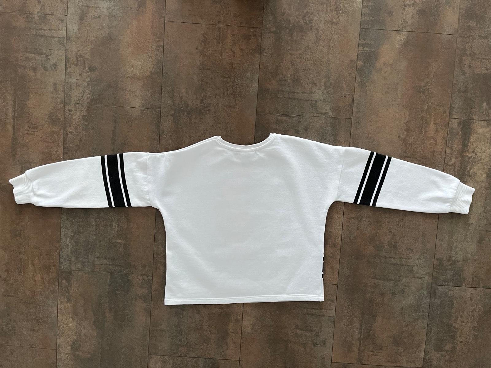 Mikina, veľ. 134, dĺžka 49cm, šírka 48cm, dĺžka rukáva od ramena 43cm, dĺžka rukáva od krku 58cm. Cena 2€ + poštovné.