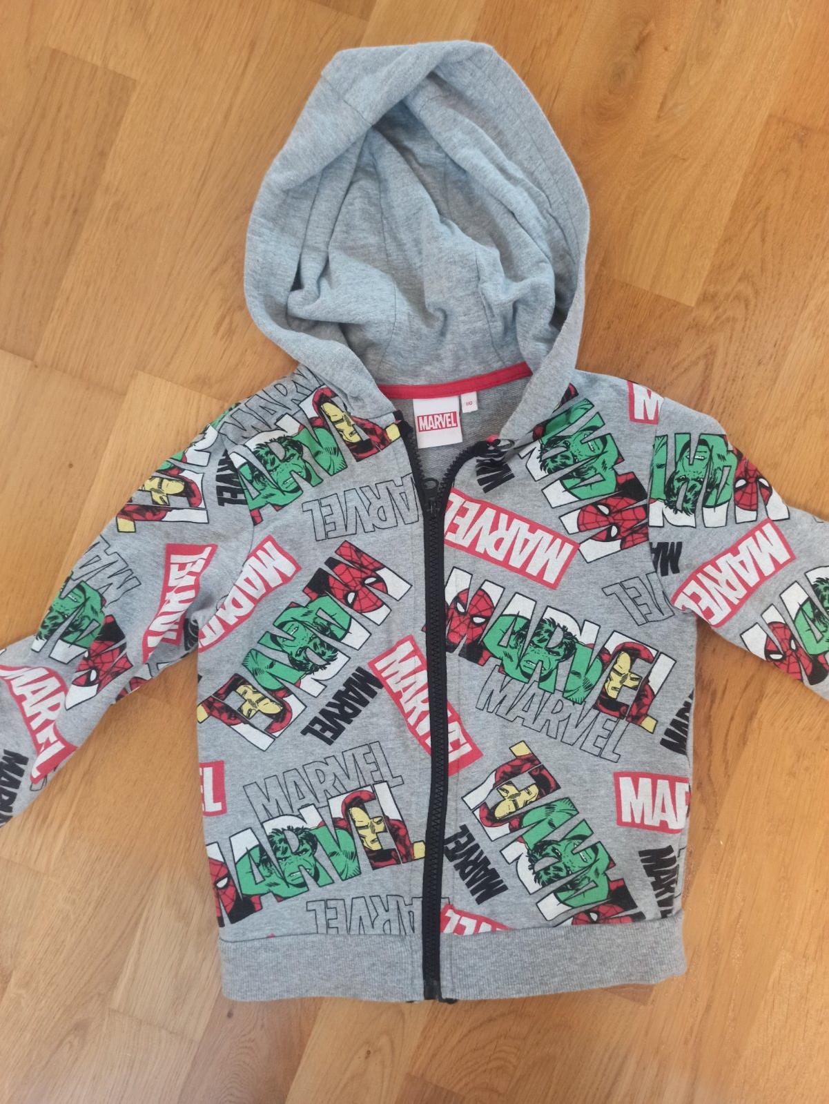Ponúkam na predaj mikinu na zapínanie (zips) s kapucňou, potlač SPIDERMAN (PAVÚKA – MARVEL, veľkosť uvedená 110 (reálne asi 104 cm), (3-5 rokov). Nosená, ale vo veľmi dobrom stave bez poškodení, fľ...