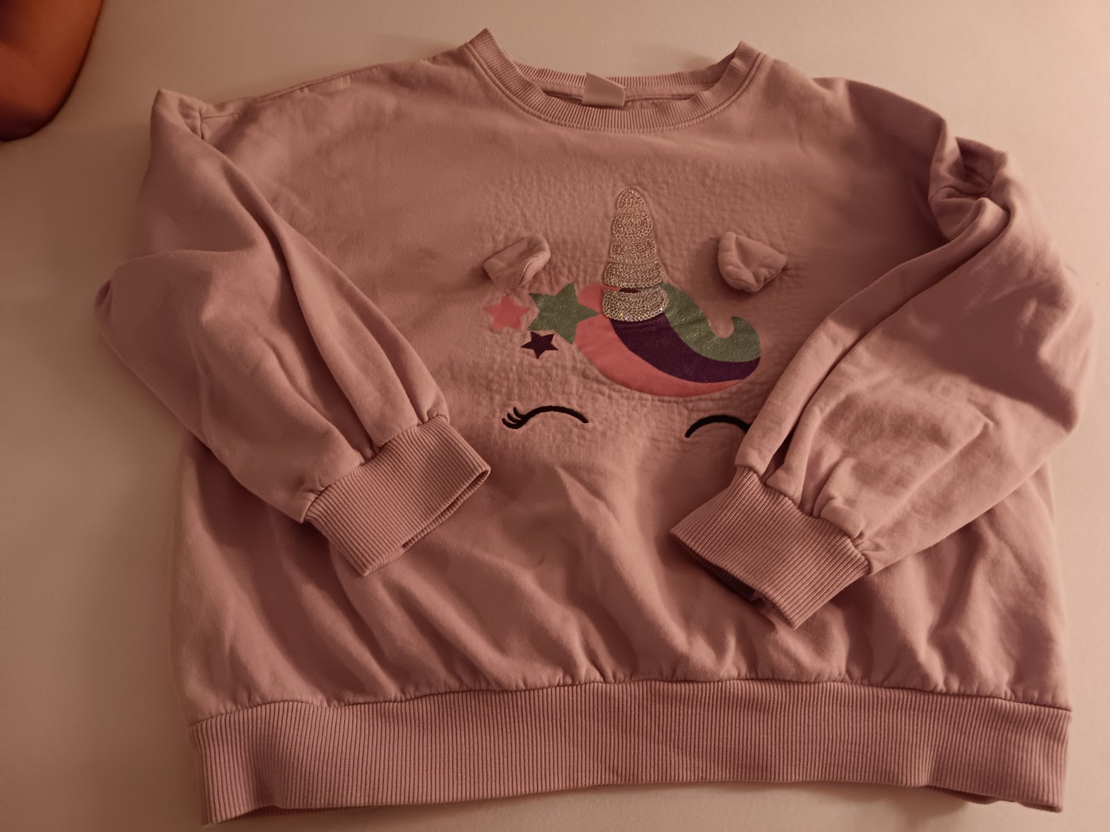 Krásna mikina v TOP stave. Veľkosť 128/134. Dĺžka je 51 cm, Dĺžka rukáv od krku je 58 cm. Cena 5 eur.