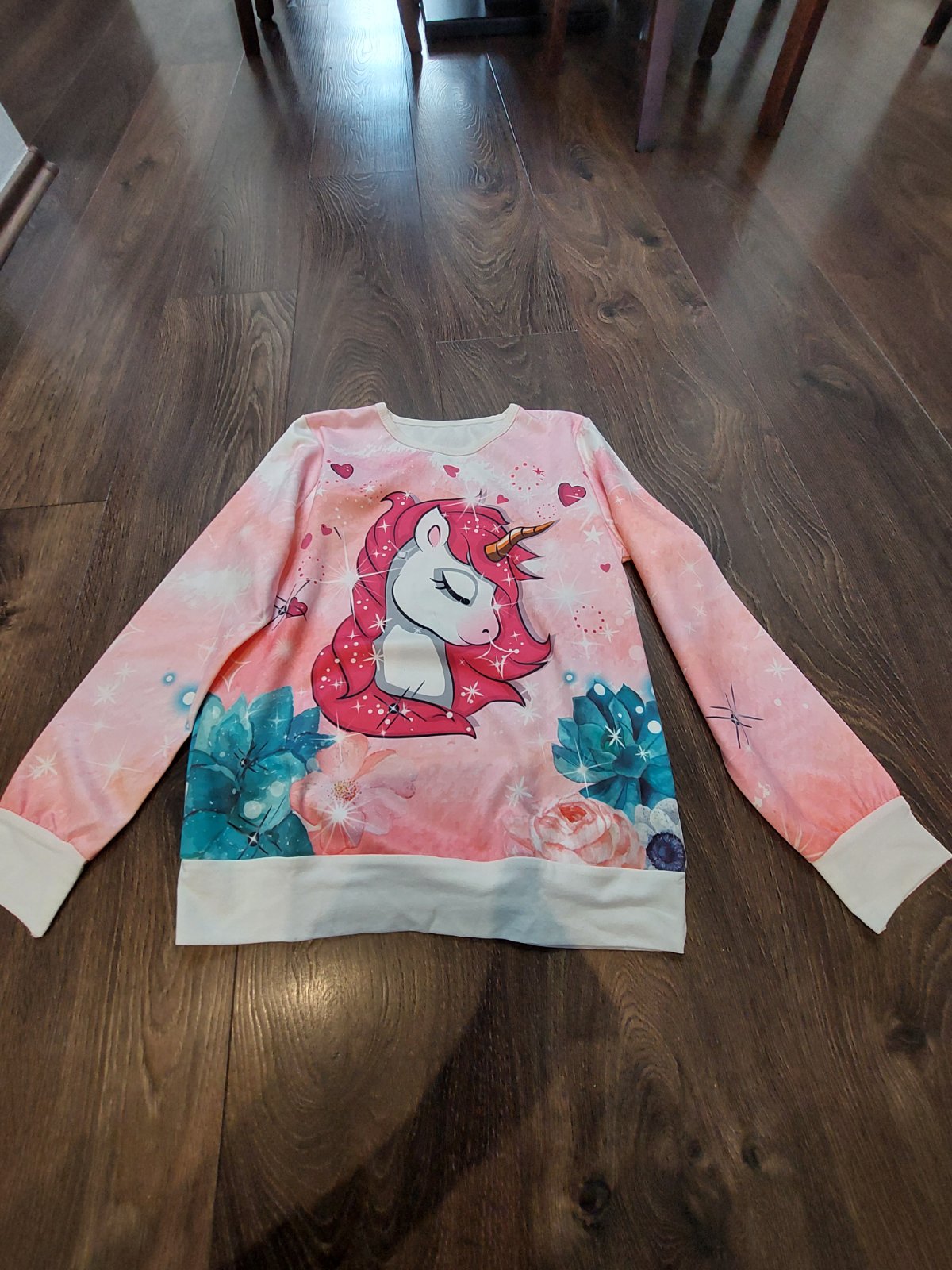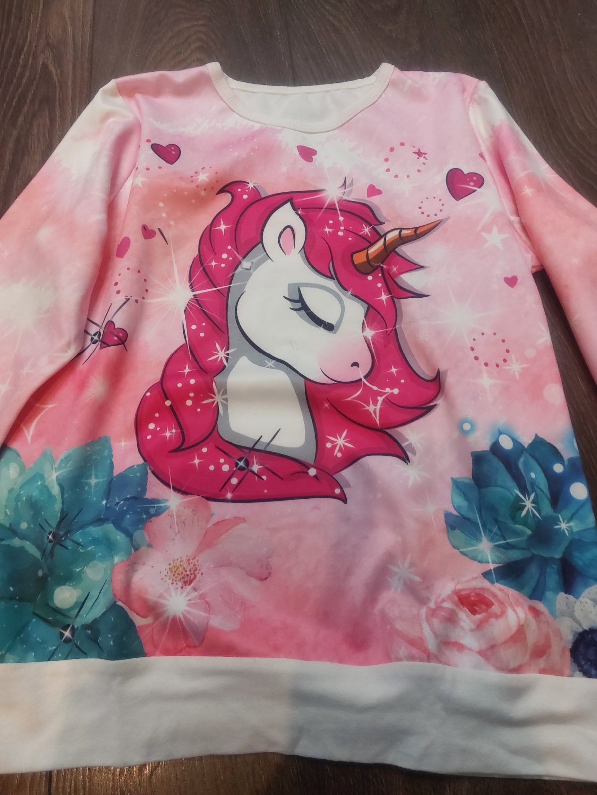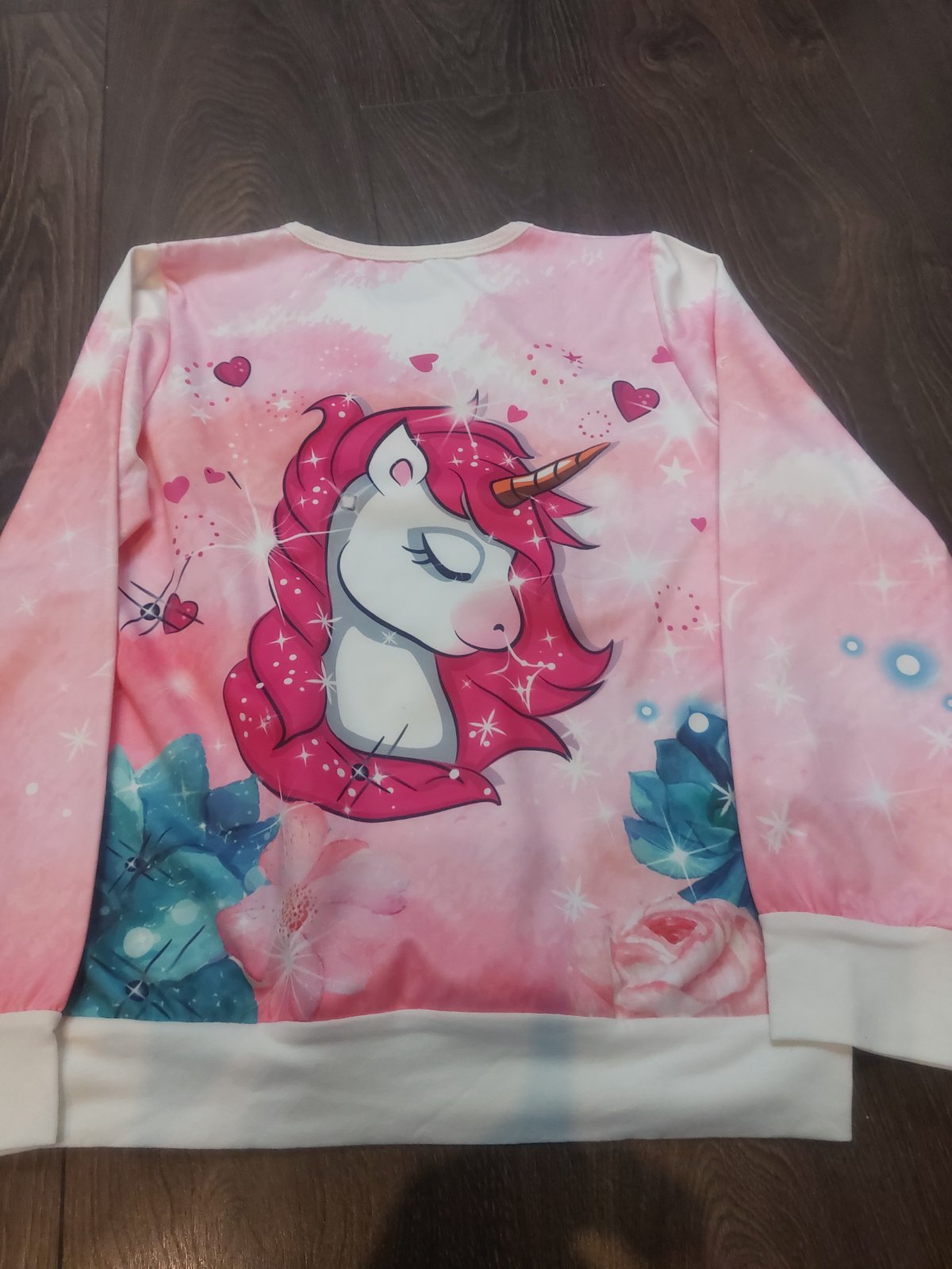 Krásna mikinka s jednorožcom vpredu aj vzadu. Veľkosť 146/152.