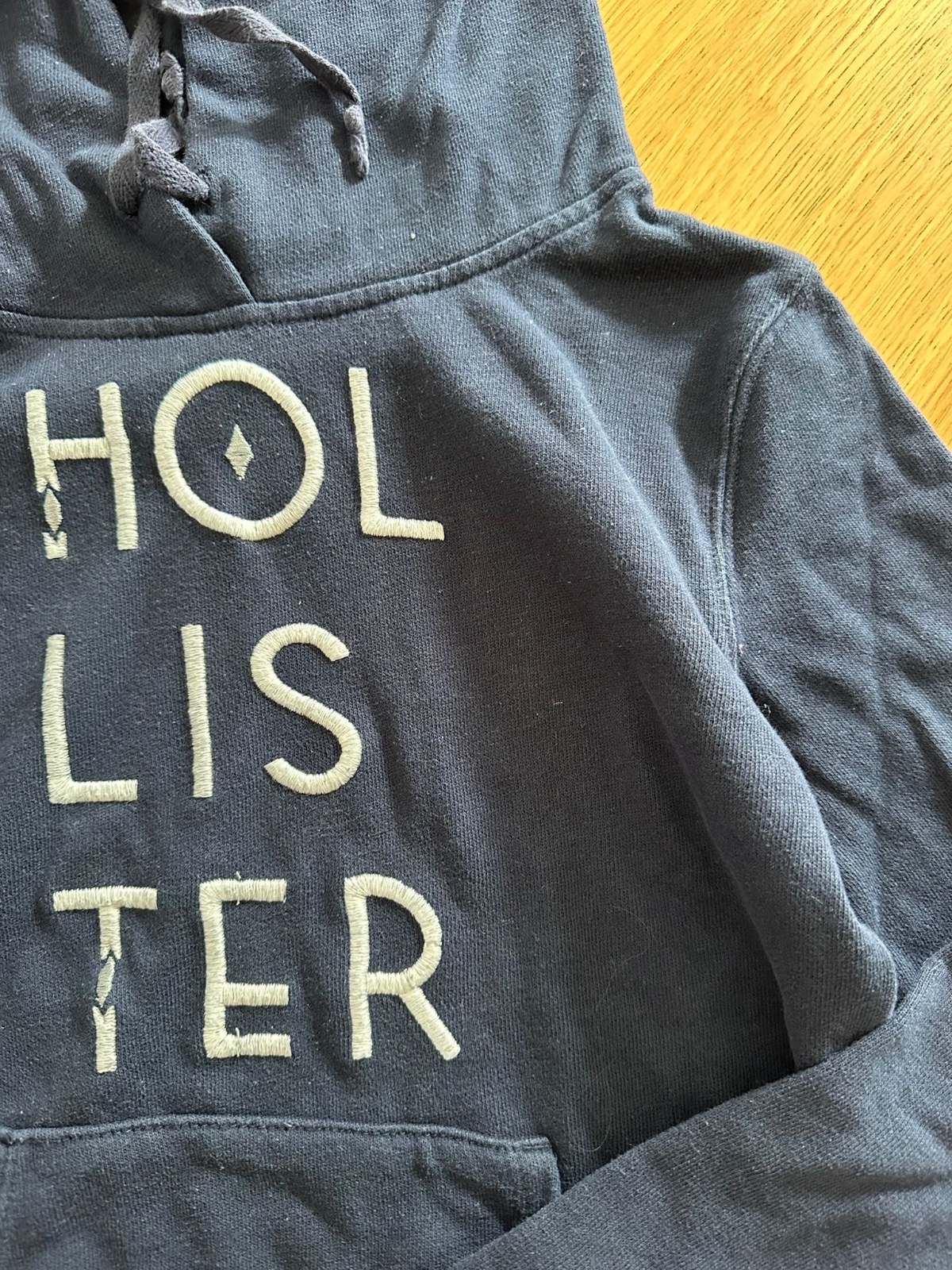 Nosená modrá mikina cez hlavu veľkosti XS značky Hollister