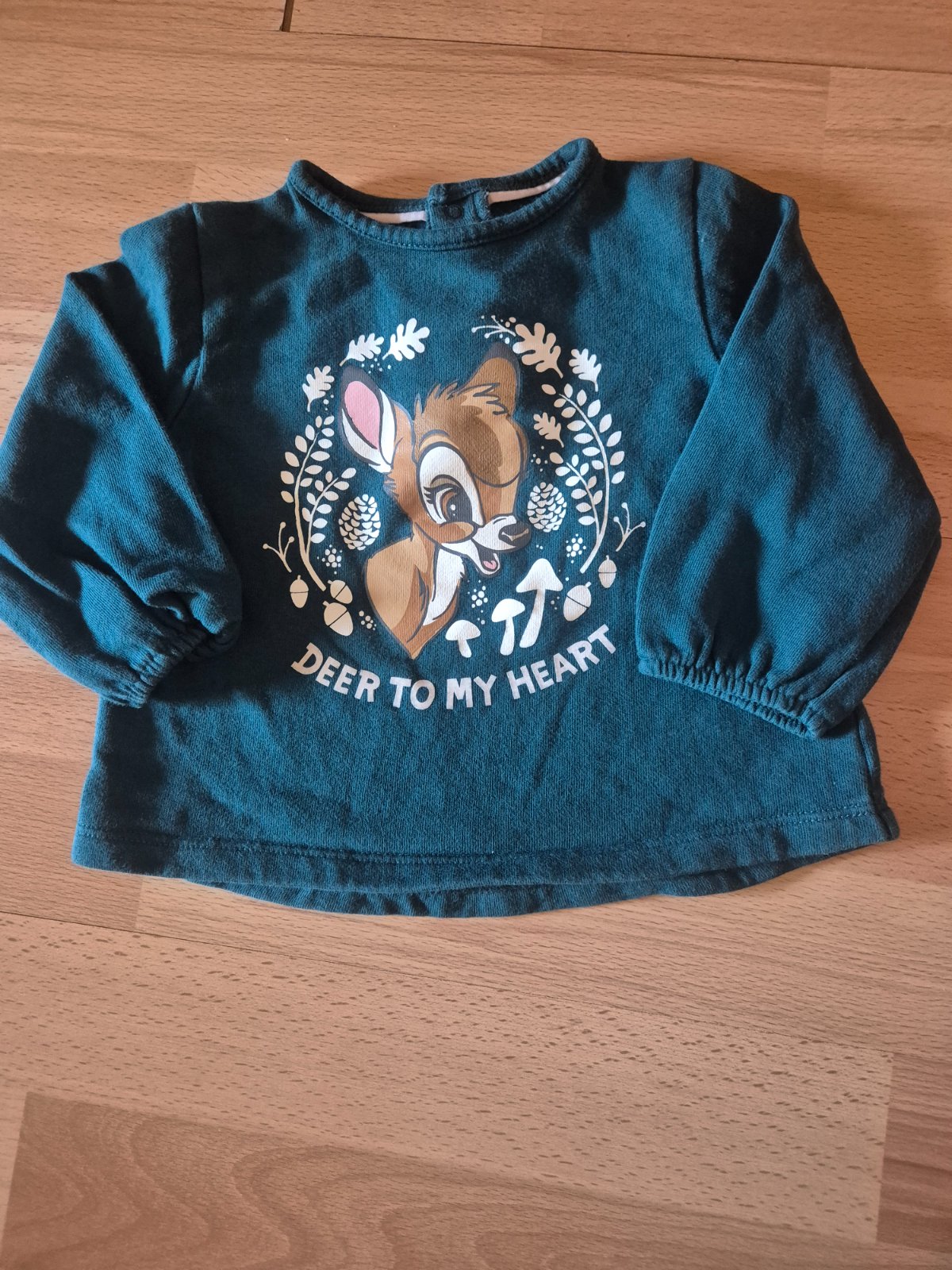 Predam krasnu mikinu s potlačou petrolejovej farby zo srnkou, vel.80,top stav,značka C&A,cena 2€