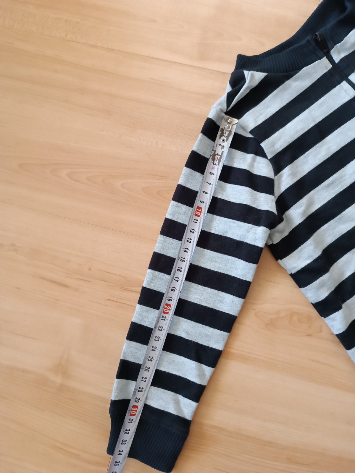 Nevyužijeme. Nemá poškodenia, zips funguje. Veľkosť uvedená 104/110, ale myslím, že sedí skôr ako 110/116.