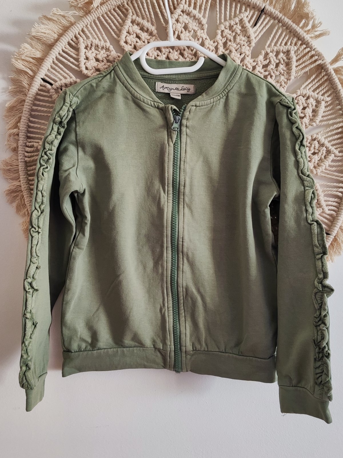 Mikina bez poškodenia. Suchý zips na golieri/stojaciku, vrecká na zips. Detail na rukáve - možnosť natiahnuť cez palec. Cena 5 eur, dohoda možná. Veľkosť 122/128