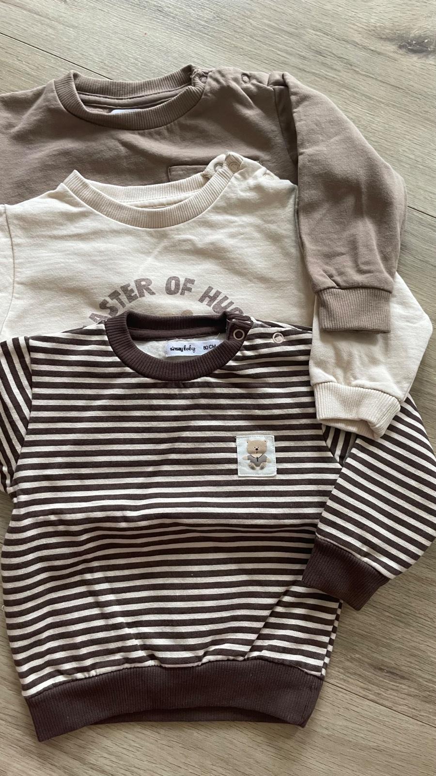 Mikina +tricko rovnakeho vzoru. Podla mna sedi na menej ako 80.