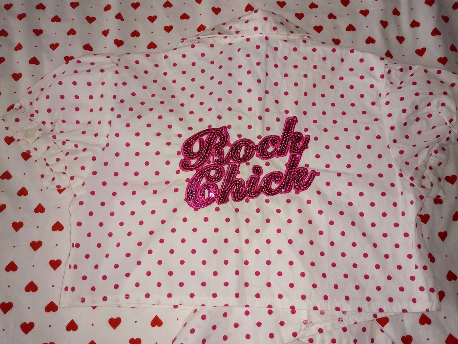 Biela s ružovými bodkami a s nápisom