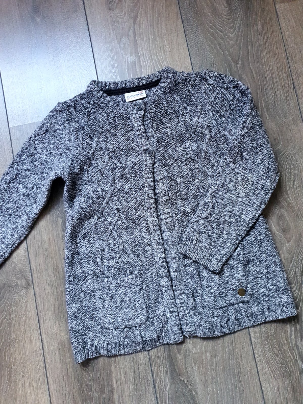 Predam svetrik s kapucnou, zapinanie na gombicky (tie su bledoruzove), znacka COCCODRILLO, velkost 122, farby tmavosiva v kombinacii s bledoruzovou. Cena 3,- eur + postovne