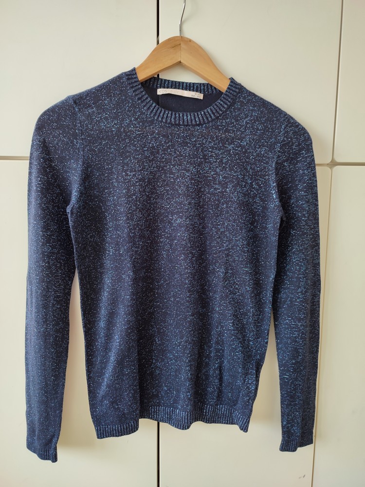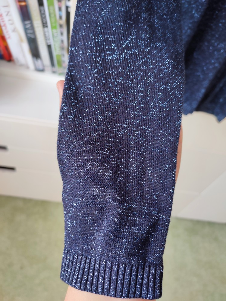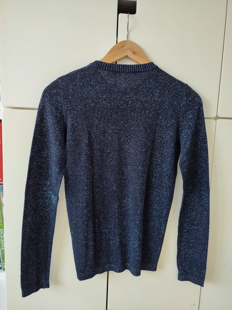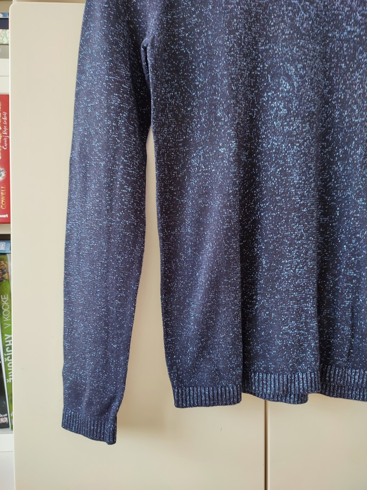 trblietavý svetrík, tenký, ľahký, veľmi príjemný materiál. nosený dcérou, v super stave bez poškodení. až 19 % metalických vlákien.