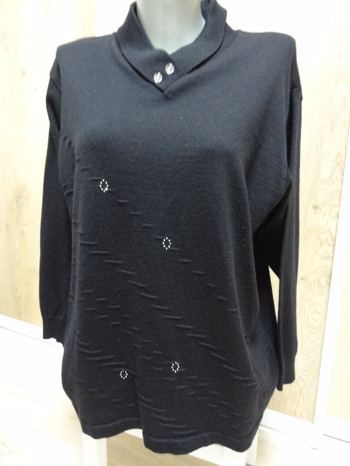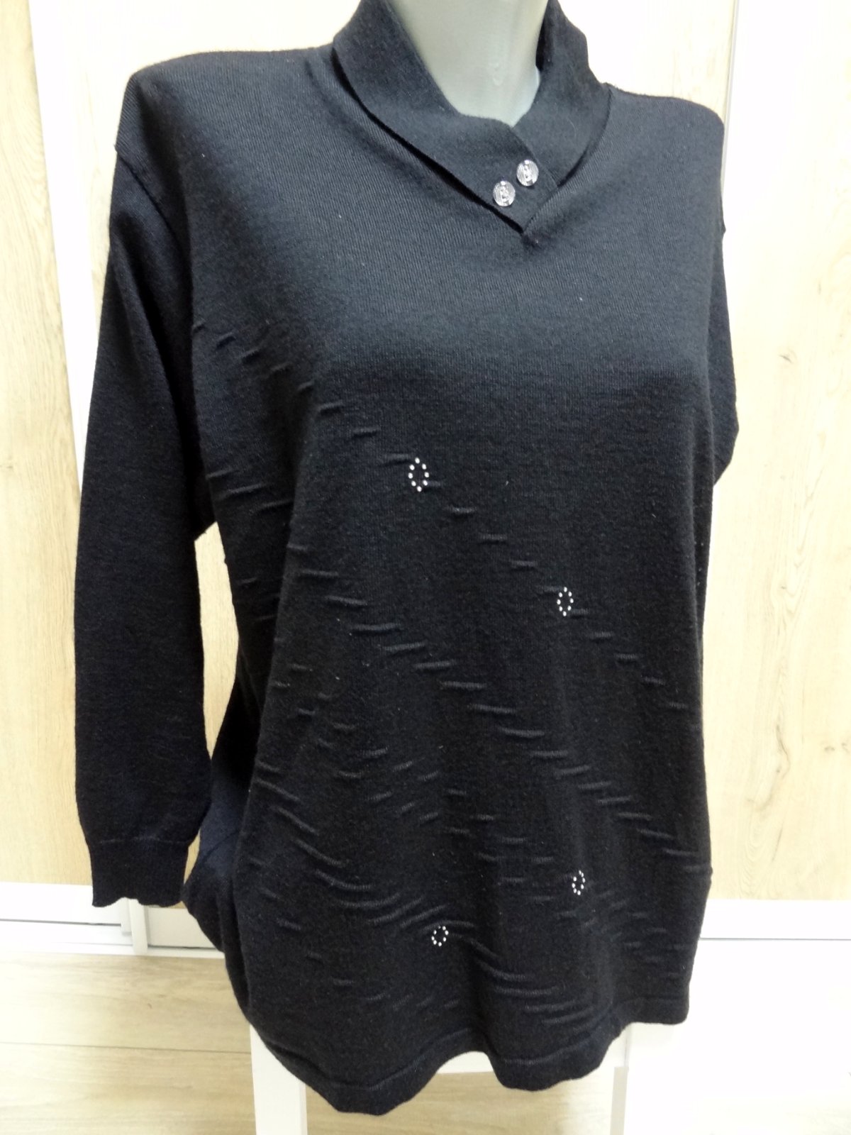 Dámsky elegantný pulover ... zdobený kamienkami... výborný stav... značka: FEMININE ELEGANCE ... veľ. 48 , no hodí sa aj 46 - dlžka 70 cm, šírka pod pazuchami 57 cm, šírka pás 56 cm
