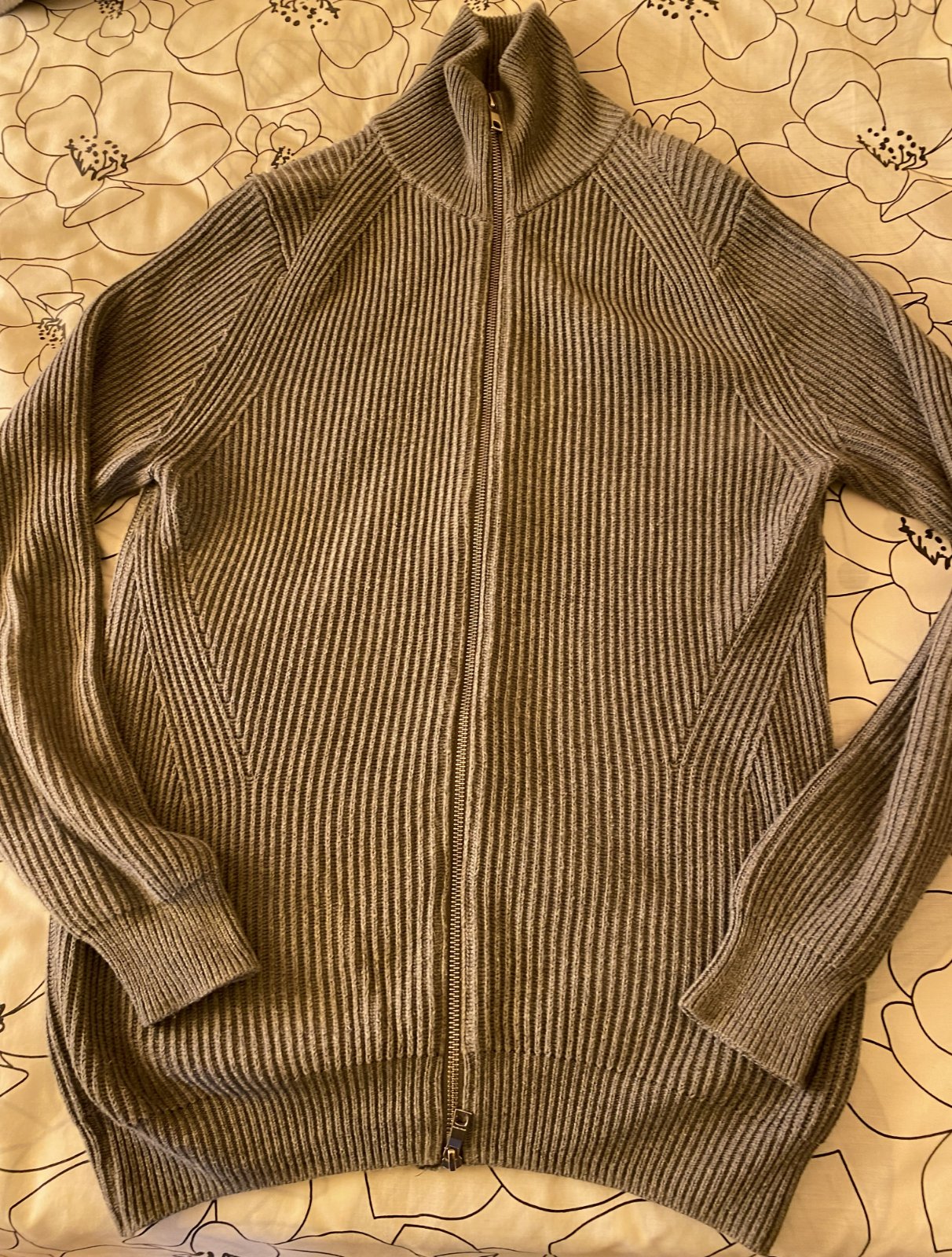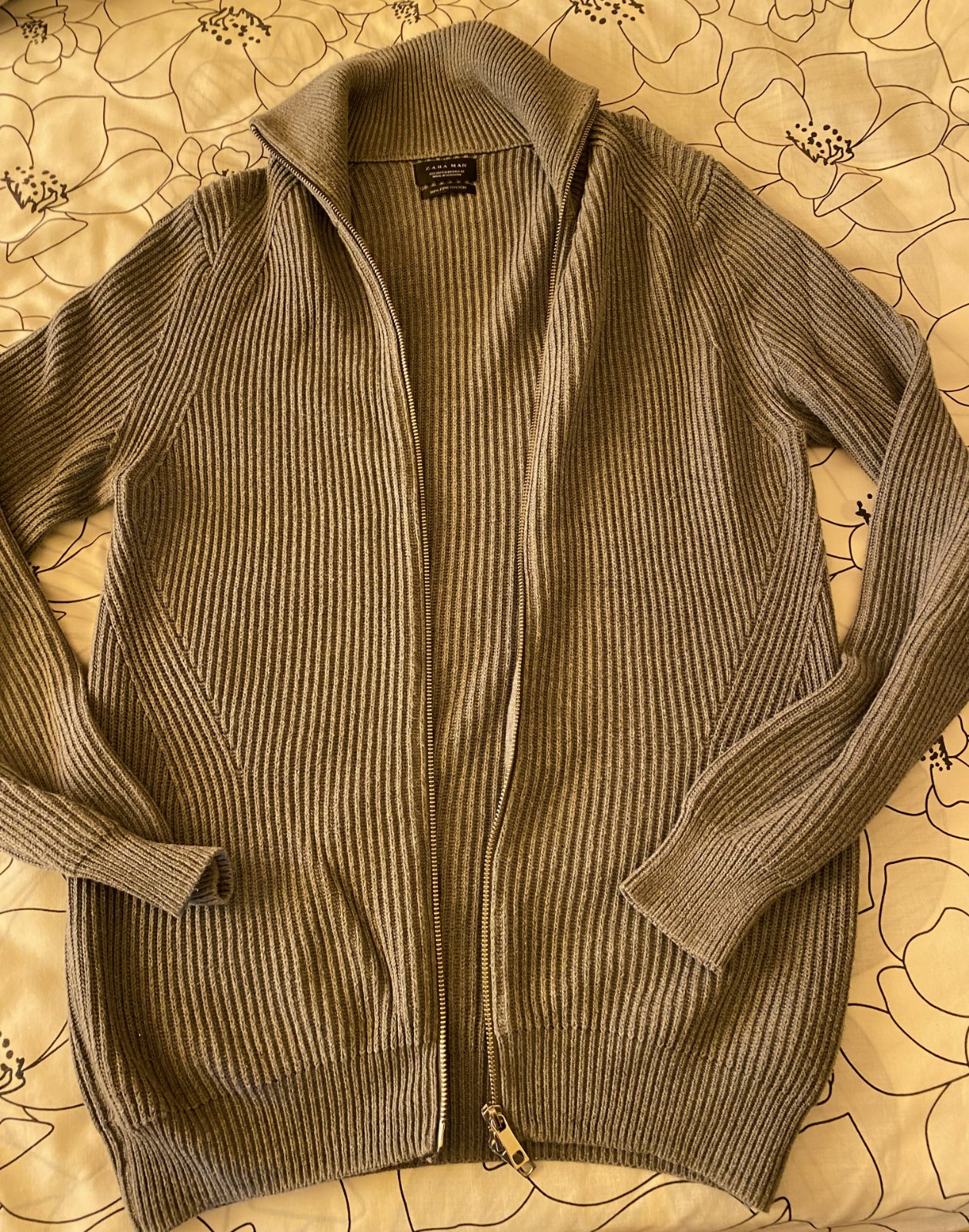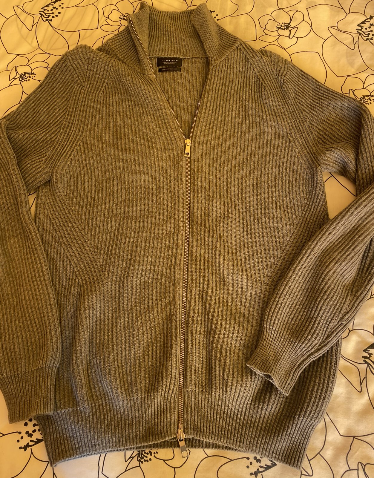 Bavlnený sveter Zara - grupol INDITEX v. M, hrubší - ťažší, nie tenký, pružný, kvalitne prepracovaný, pekná šedá farba - viď foto - niektoré foto osvietené, málo nosený na striedačku s inými. Miery merané v kľude - je pružný, všade povolí: dĺžka od krku - goliera dolu: 70cm, šírka: 48cmx2, rukáv od goliera vrátane patentu: 79cm + 11cm výška goliera (2 vrstvy).