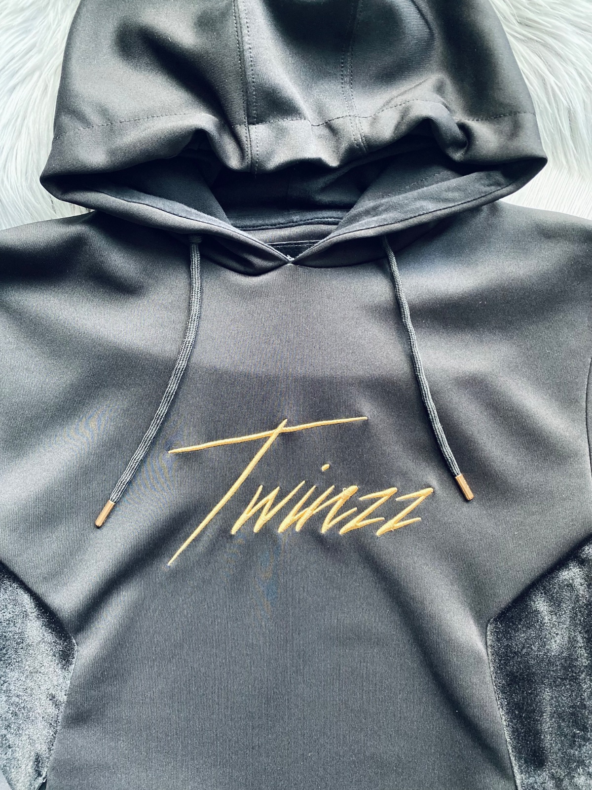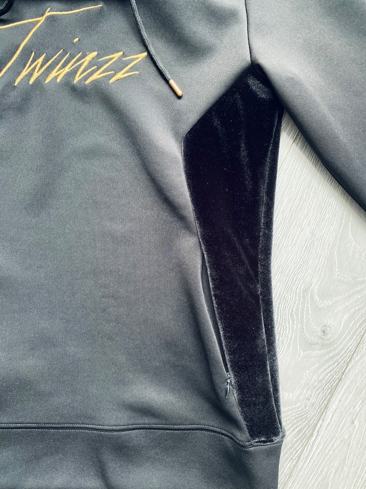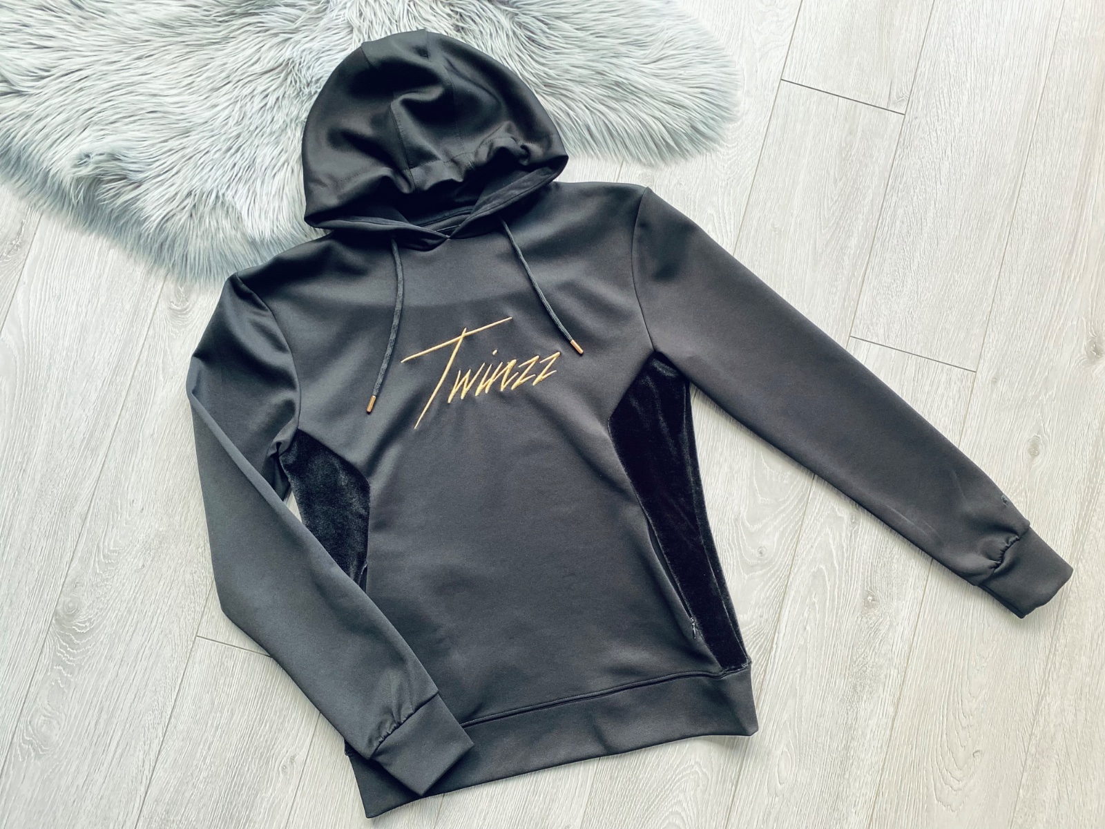 Pánska čierna mikina Twinzz, veľkosť M, oblečená asi tri krát, ako nová, bez vád a chýb , po bokoch semišový detail, vrecká so zipsom.