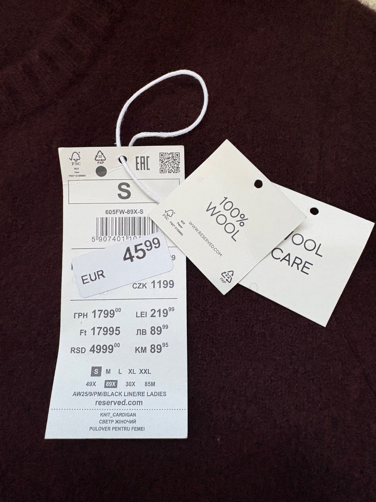 V ponuke čokoládovo hnedý sveter, 100 % vlna, Reserved, veľkosť uvedená S, teraz sadne skôr na XS, pôvodná cena 45.99 €. Krásny a kvalitný kúsok, nosený minimálne, ktorý som ale nedopatrením 1x oprala spolu v práčke a sveter sa trochu zrazil :(. Mne už teraz nesedí, ale nakoľko je škoda sveter zahodiť, možno by niekomu ešte sadol. Rozmery na foto. Odporúčam, ja som si ho veľmi nestihla užiť.