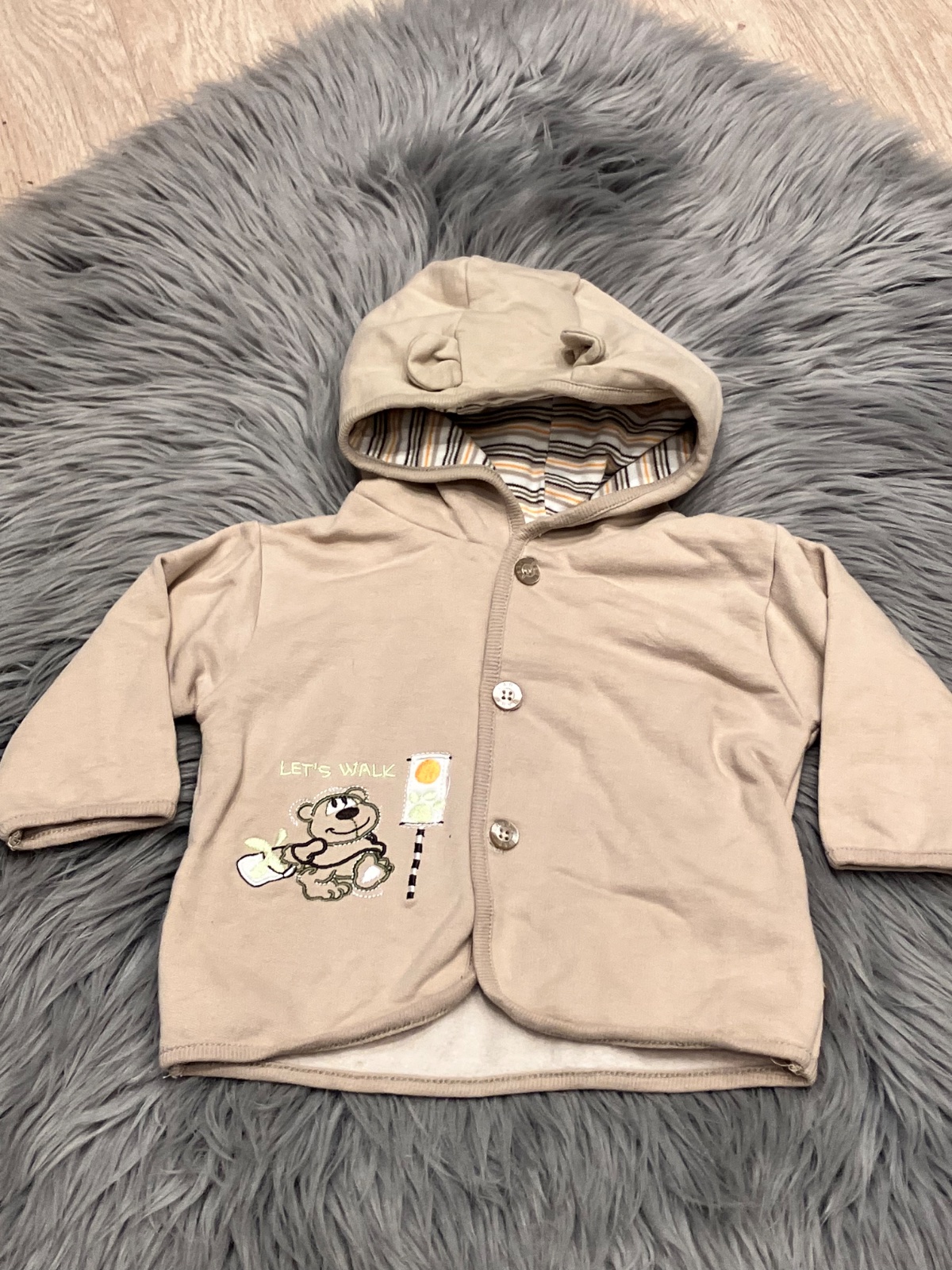 Chlapčenská mikina s kapucňou, zapínanie na gombíky, vo vnútri jemný flís, jemne elastická, materiál 65%bavlna 35%polyester.