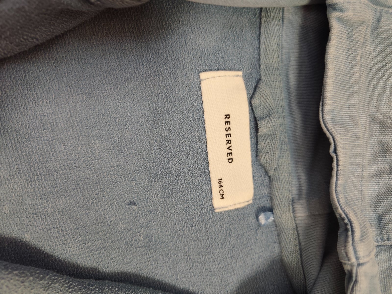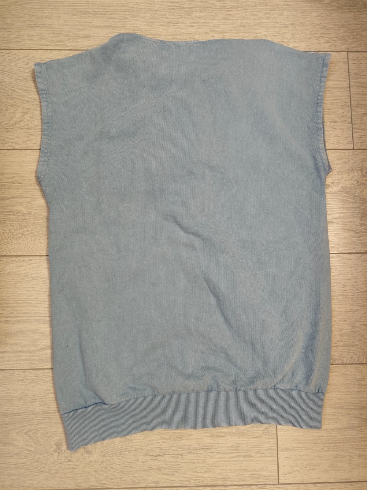 Farba je bledomodra s vypranym efektom.