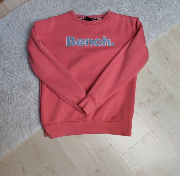 Krásna mikinka, názov Bench vykamienkovaný, veľkosť M, ale je menšia tak i S, málo nosená, napriek tomu 2 škvrny na pleci dlžka 60cm, šírka 42cm, dlžka rukáva od krku 67cm, v patente otvory na palec