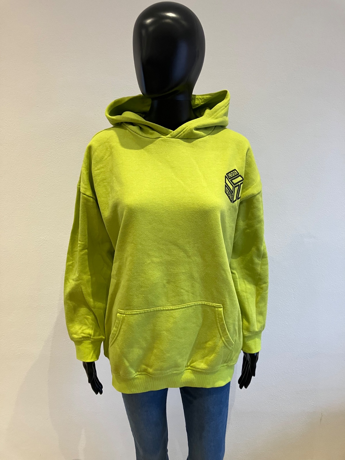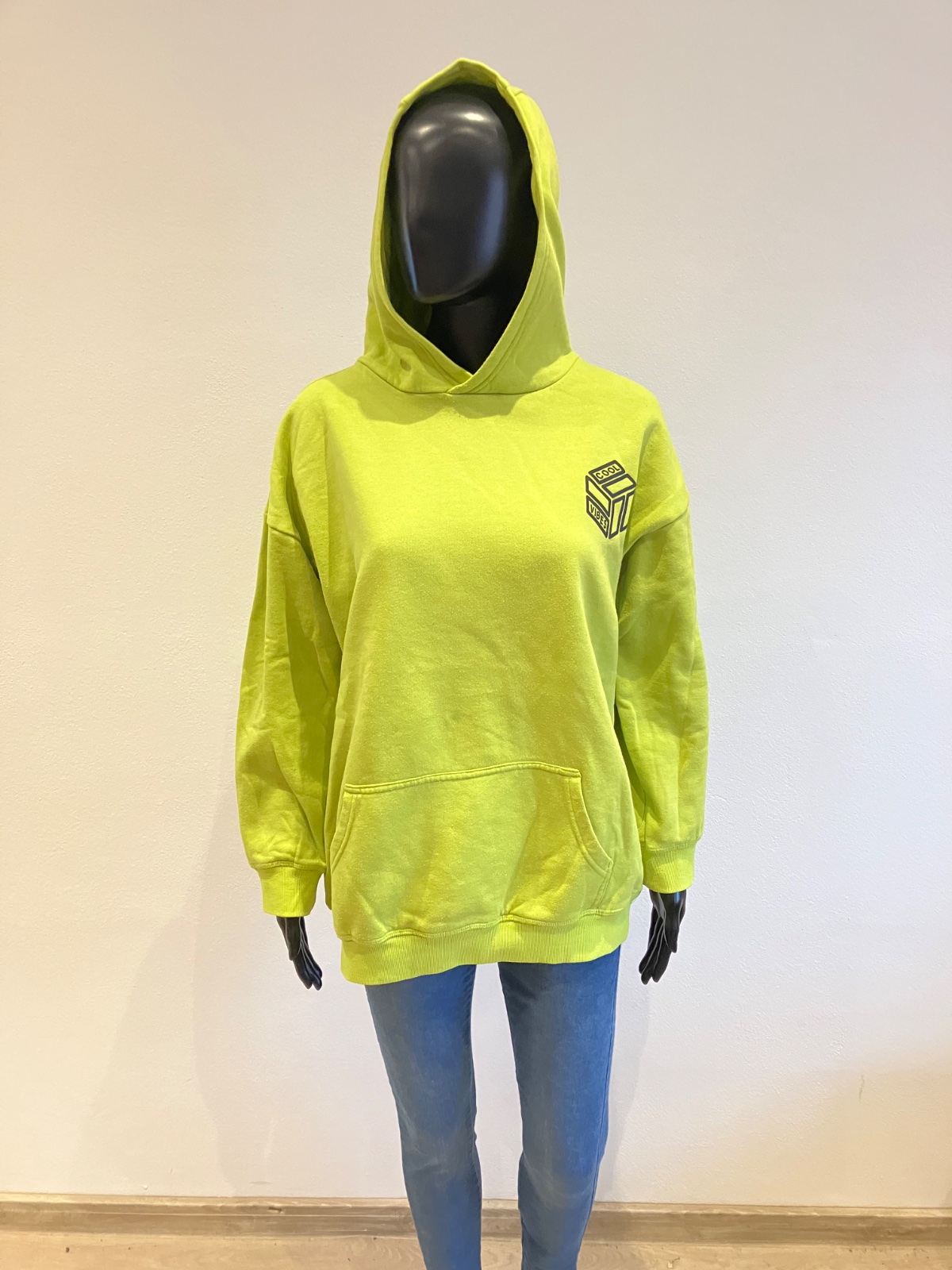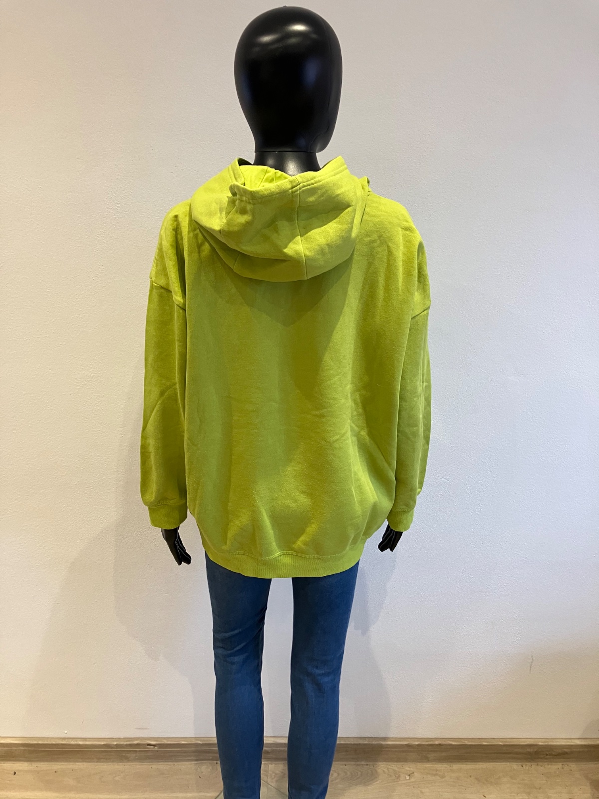 Dievčenská zelená ležerná mikina s kapucňou. Mikina má klokanie vrecko. Vo vnútri zateplená jemným flisom. Materiál 60%bavlna,40%polyester.