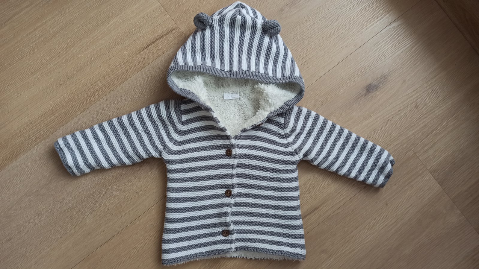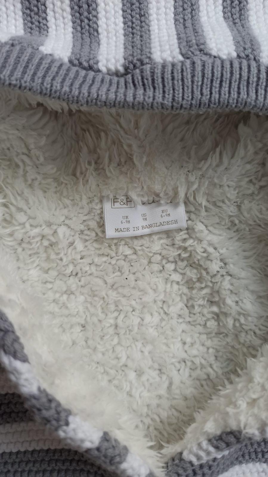 Sivo-biely zateplený svetrík, veľkosť 6-9 mesiacov, v dobrom nosenom stave.