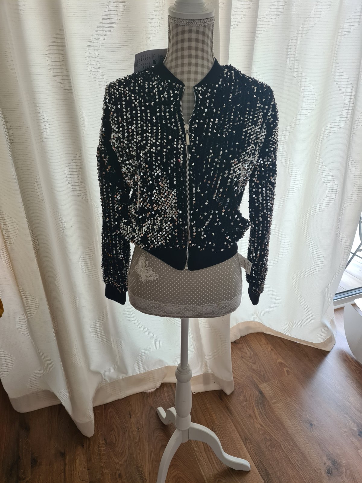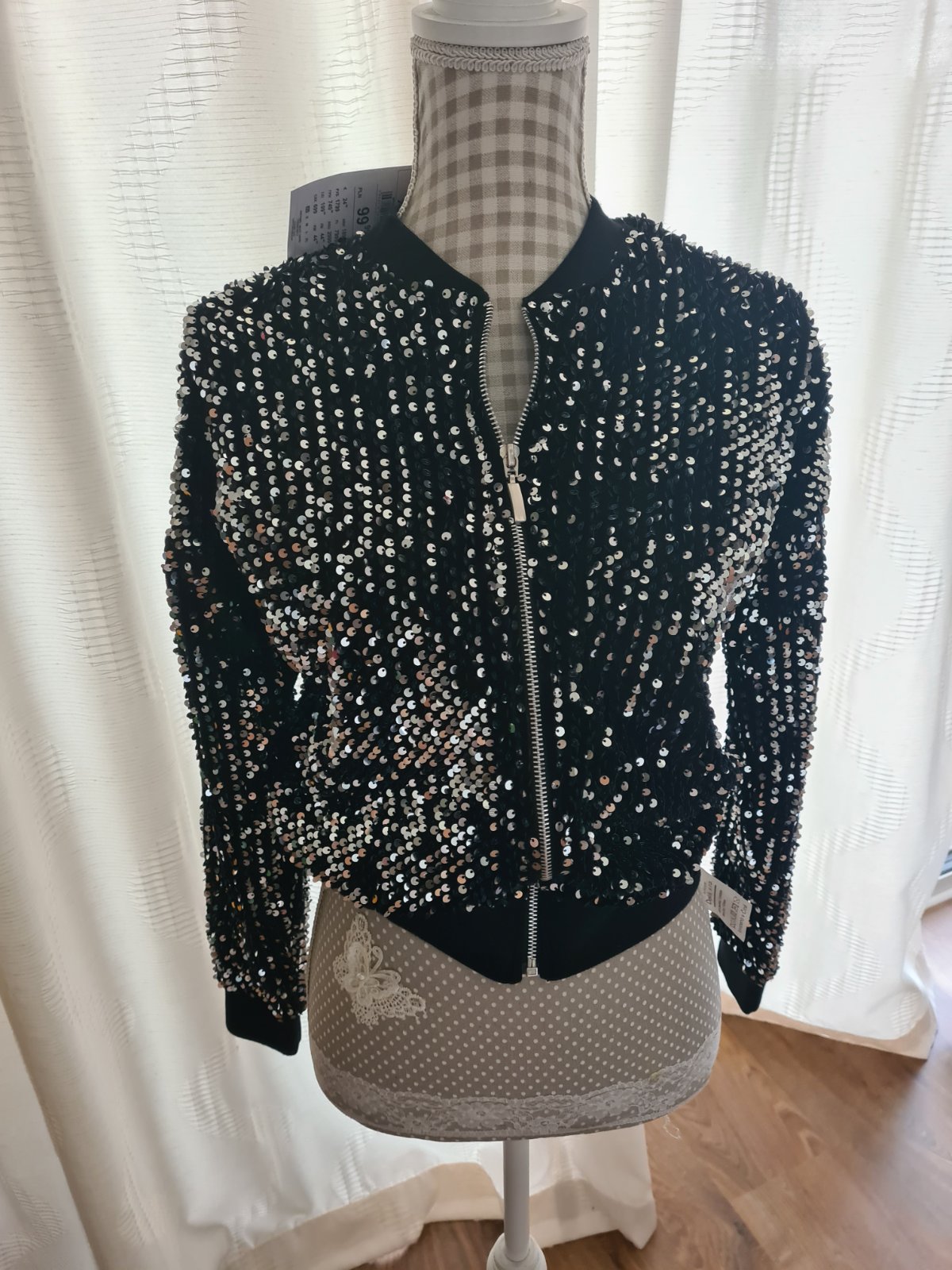 Krásna flitrová mikina ma zips, veľkosť 34, nenosená ešte s visačkou , cena 6.90 €