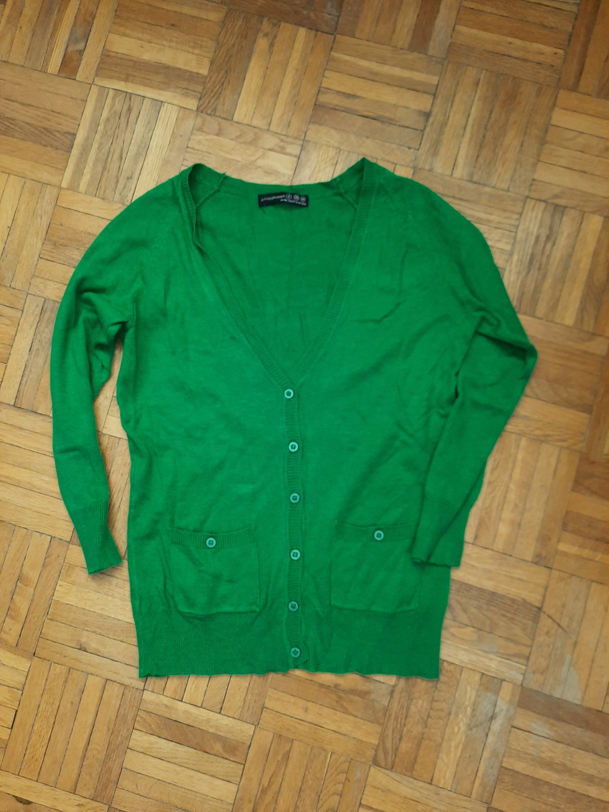 Pekný zelený tenší svetrík so zapínaním na gombíky. Má výstrih do V. Vhodný aj pre staršie dievčatá. Veľmi dobrý stav.