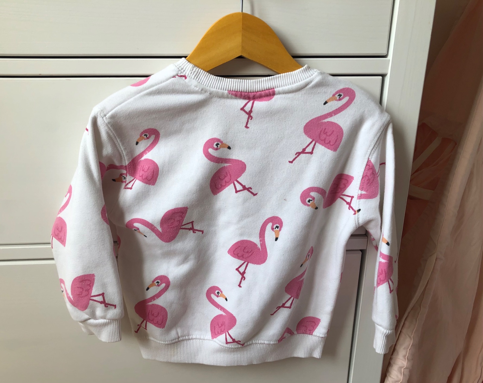 - nosená biela mikina s plameniakmi