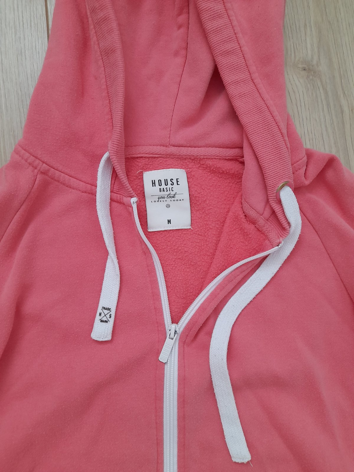 Ružová mikina značka House, veľ. M. Mikina ma na sebe žmolky a na zipse je trošku očuchaná farba (odfotené na poslednej fotke).