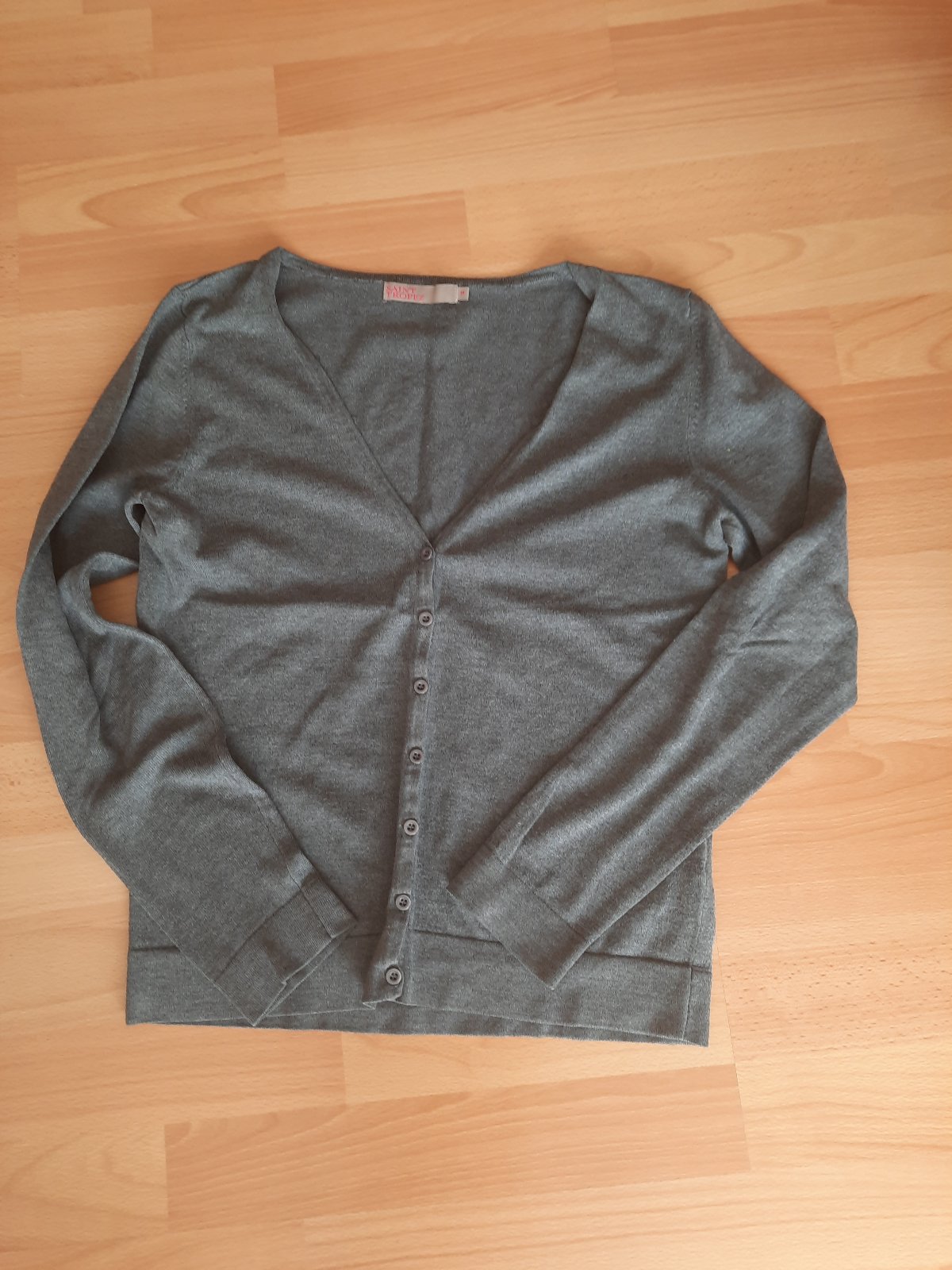 Nenosený, len opratý kardigán. Prišité zapínanie môže sa odpárať. veľkosť ako S, M aj L. Regulovateľné rukávy, zapínanie na gombík.