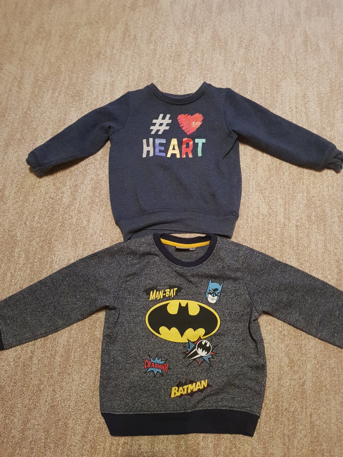 Pekný,nosený stav.Prvý pulóver skôr na doma,má žmolky,Batman pulóver bez poškodenia.Cena spolu.