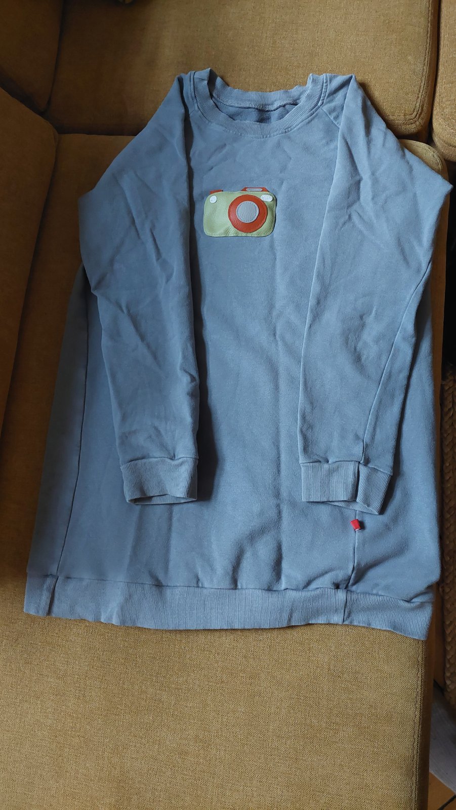 Jeden malý skoro neviditeľný fliačik, inak super stav. Je to tunika, albo dlhšia mikina/šaty.