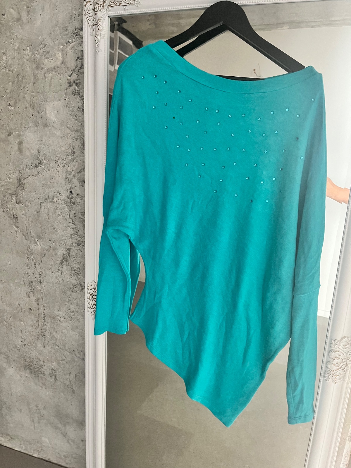 Nenoseny,nevhodny dar,uz bez visaciek Prijemny elasticky material Sedi na XS,S,M Dlzka 50cm Š:2x37cm Rukav od krku 65,5cm