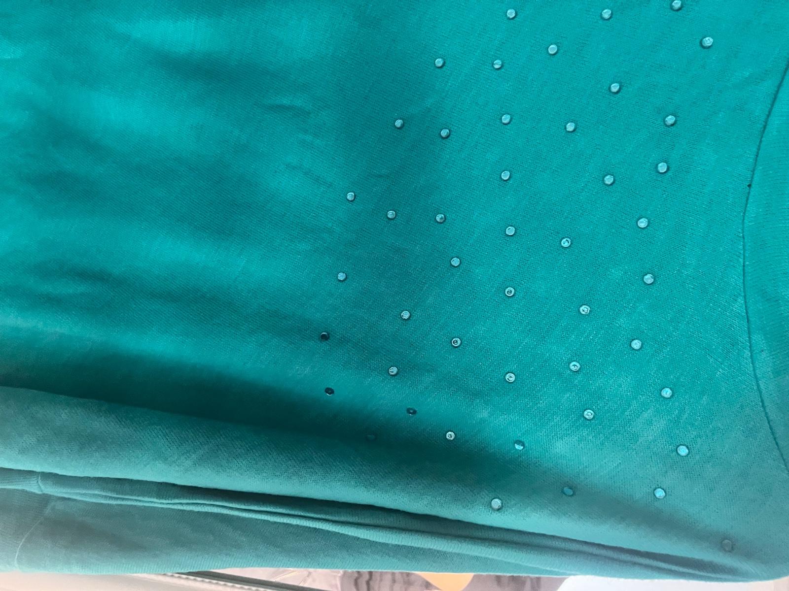 Svetrík na leto so zapínaním na zips, s kapucňou a krátkym rukávom, zlatým lemovaním. Nosený, vo veľmi dobrom stave, bez poškodení. 2 vnútorné vrecká vpredu. Celková dĺžka 52 cm, šírka pazuchy 32 ...