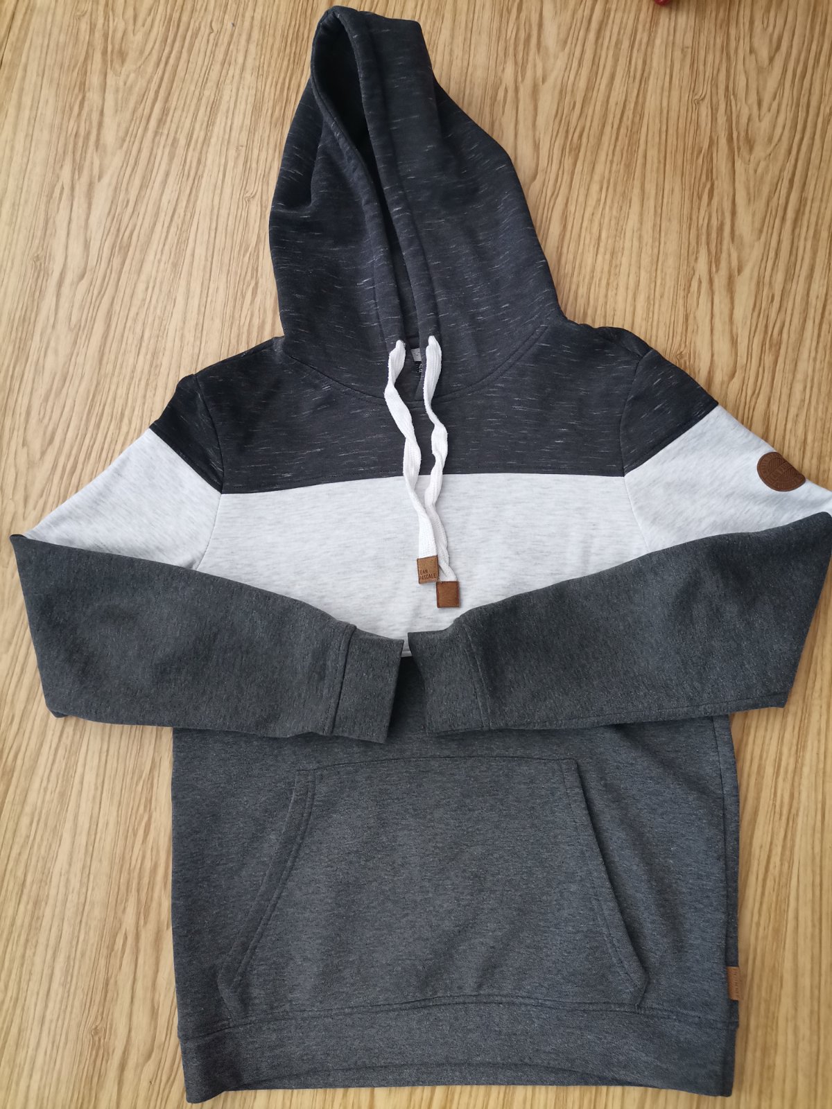 Tmavošedá máličko jemnučko prskaná, s aplikáciou vpredu, klokania kapsa a kapucňa. Značka Angelo Litrico, veľkosť S. Stav veľmi dobrý, minimálne známky nosenia. Cena 8,90€