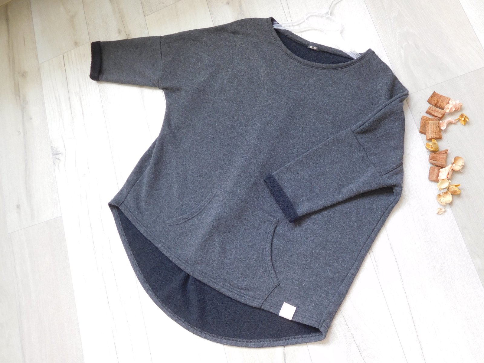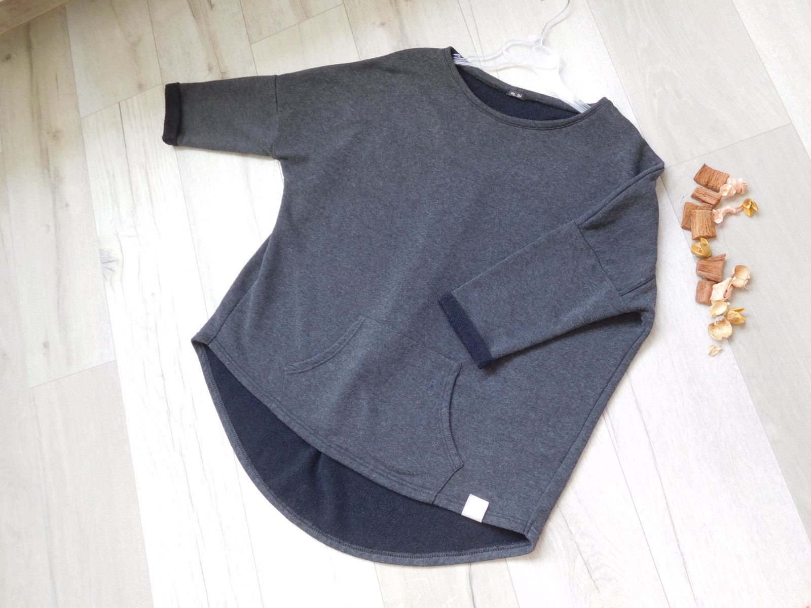 Nadherna ZARA mikinka s okruhlym golierom a dlhym rukavom. Elasticke zakoncenia a volany.Farba oznacena ako drevene uhlie - tmavo siva az do cierna ZLOZENIE : 82% POLYESTER, 16% VISKOZA, 2% ELASTA...