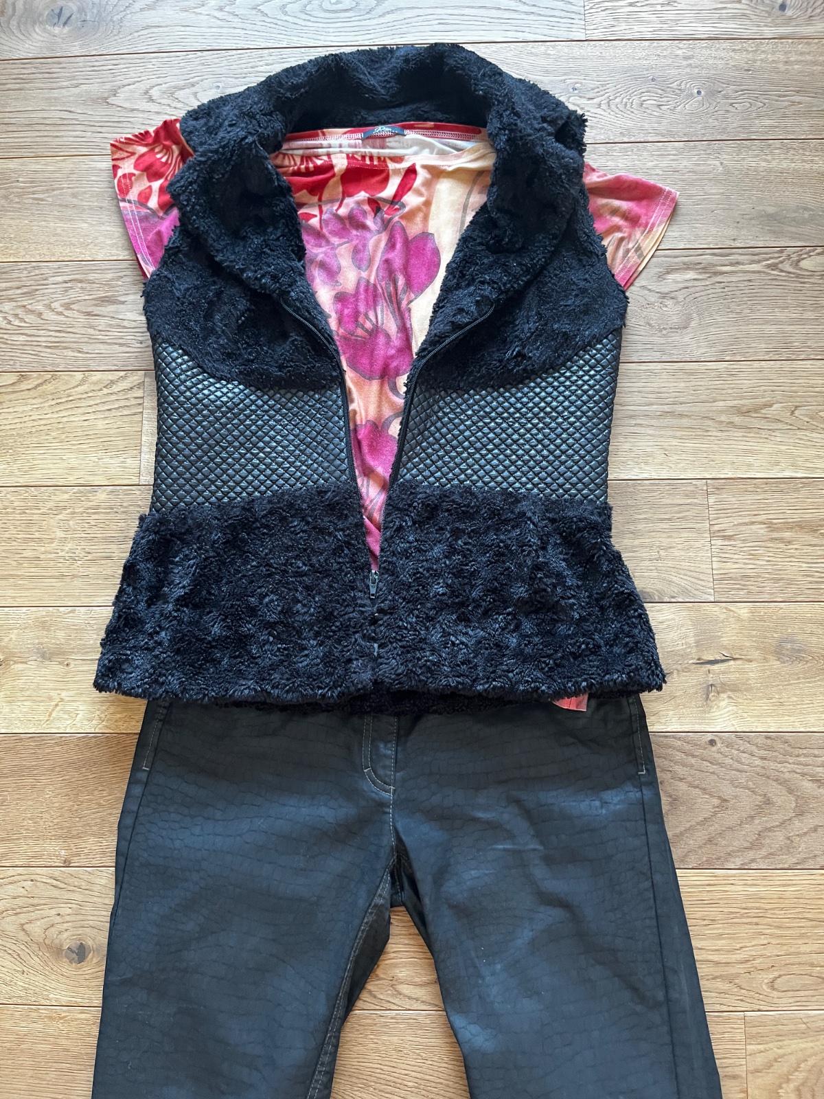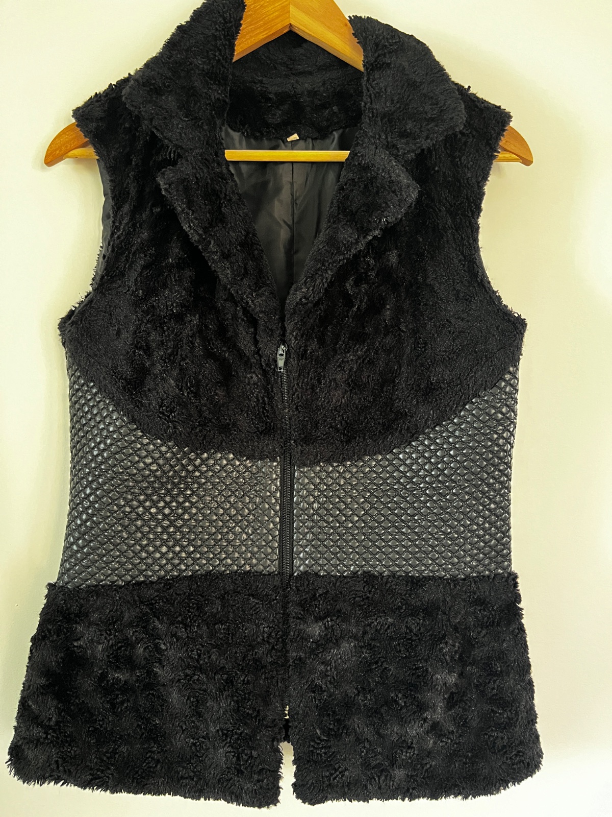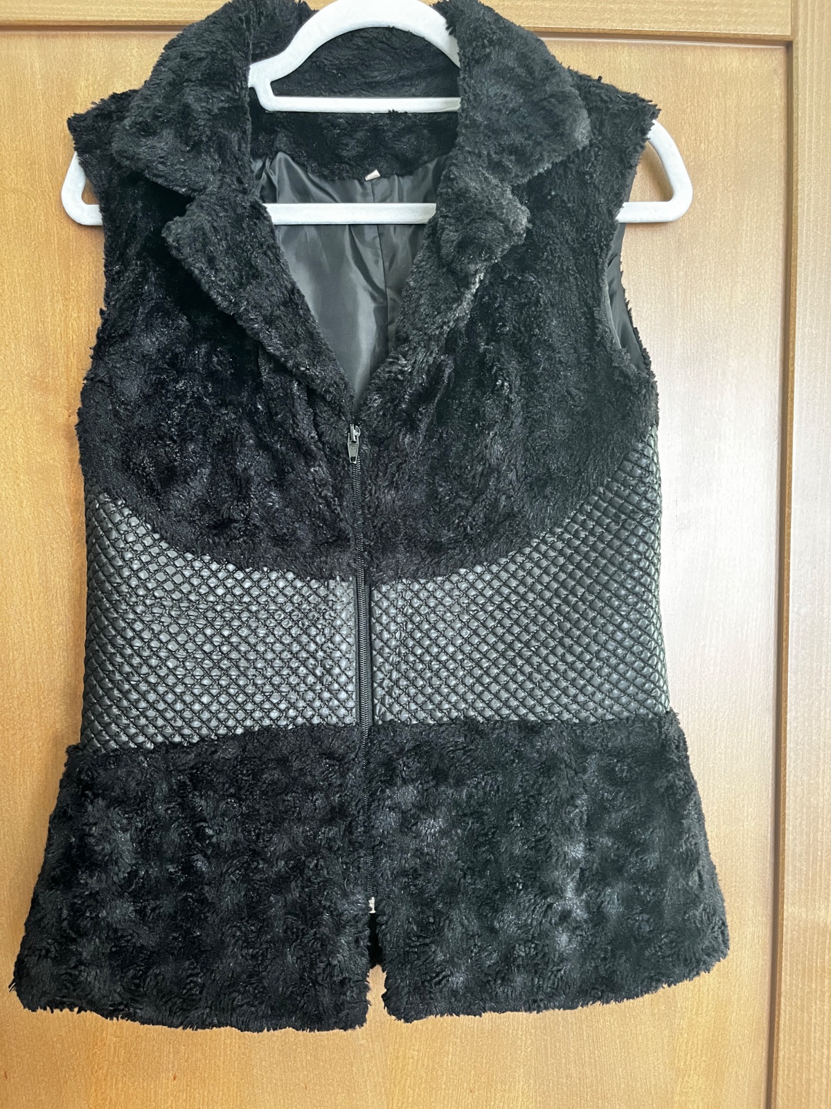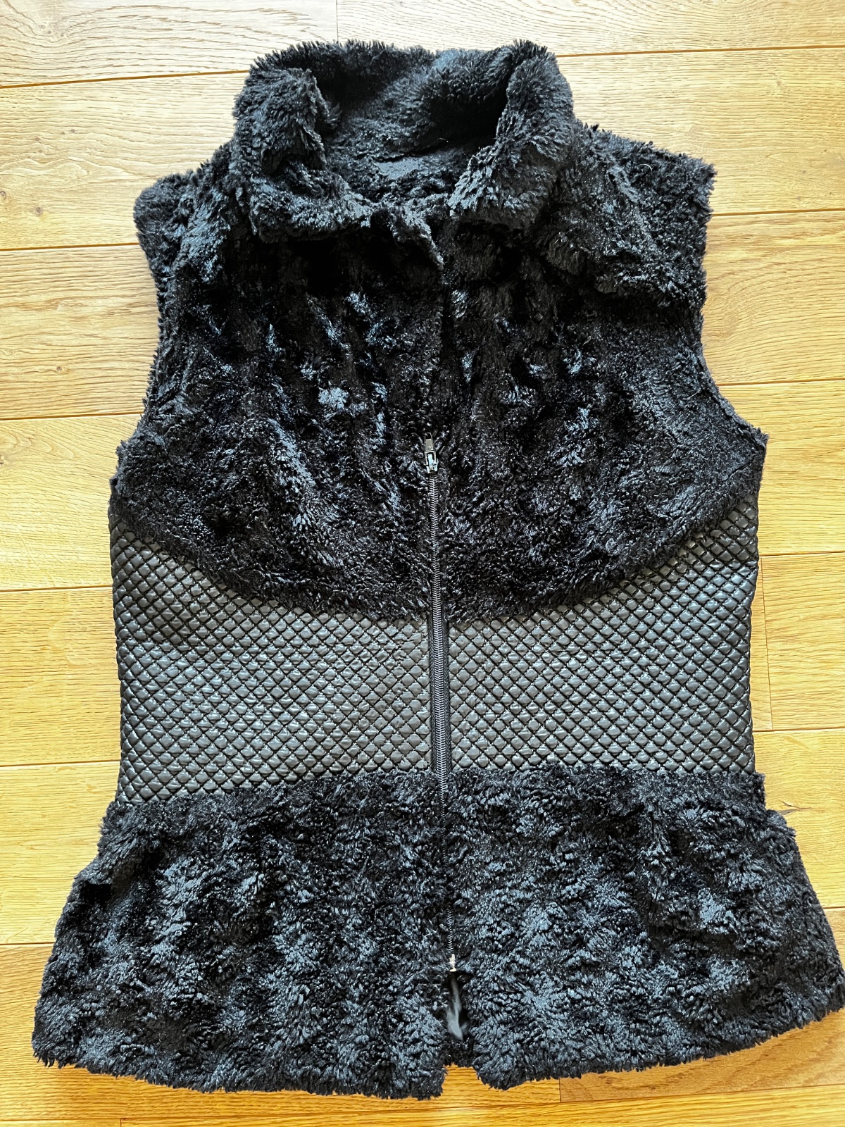 Predám veľmi peknú čiernu vestu s kombináciou jemnej kožušiny a prešívaného koženkového detailu.
