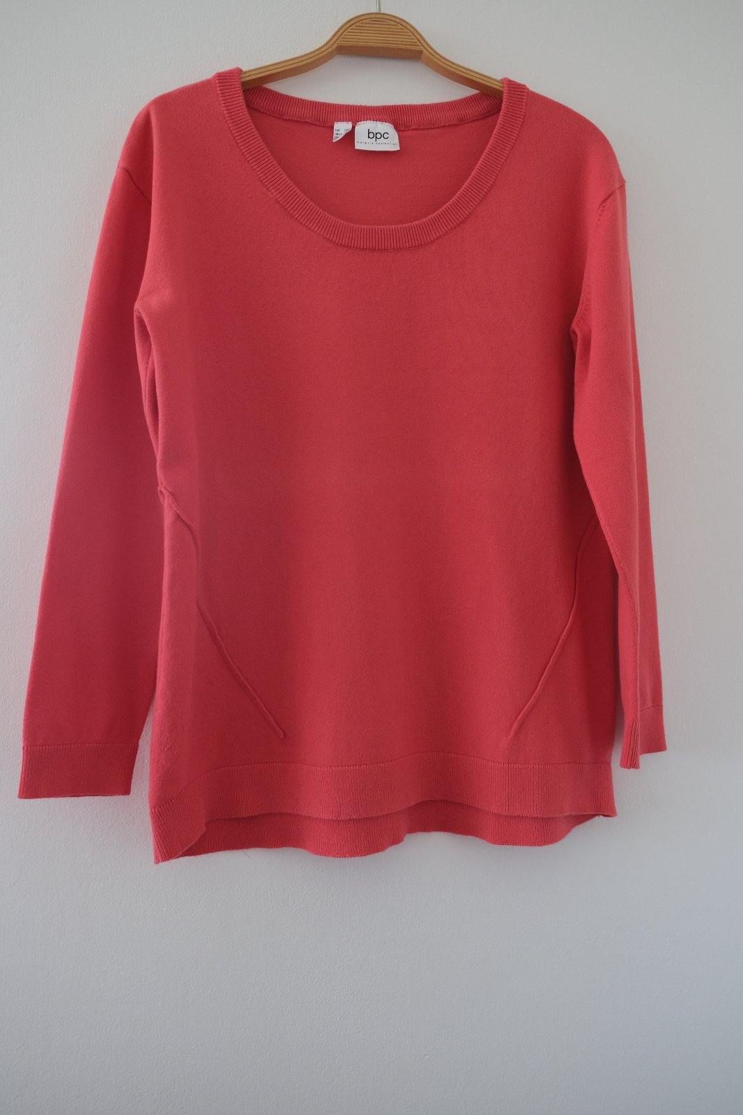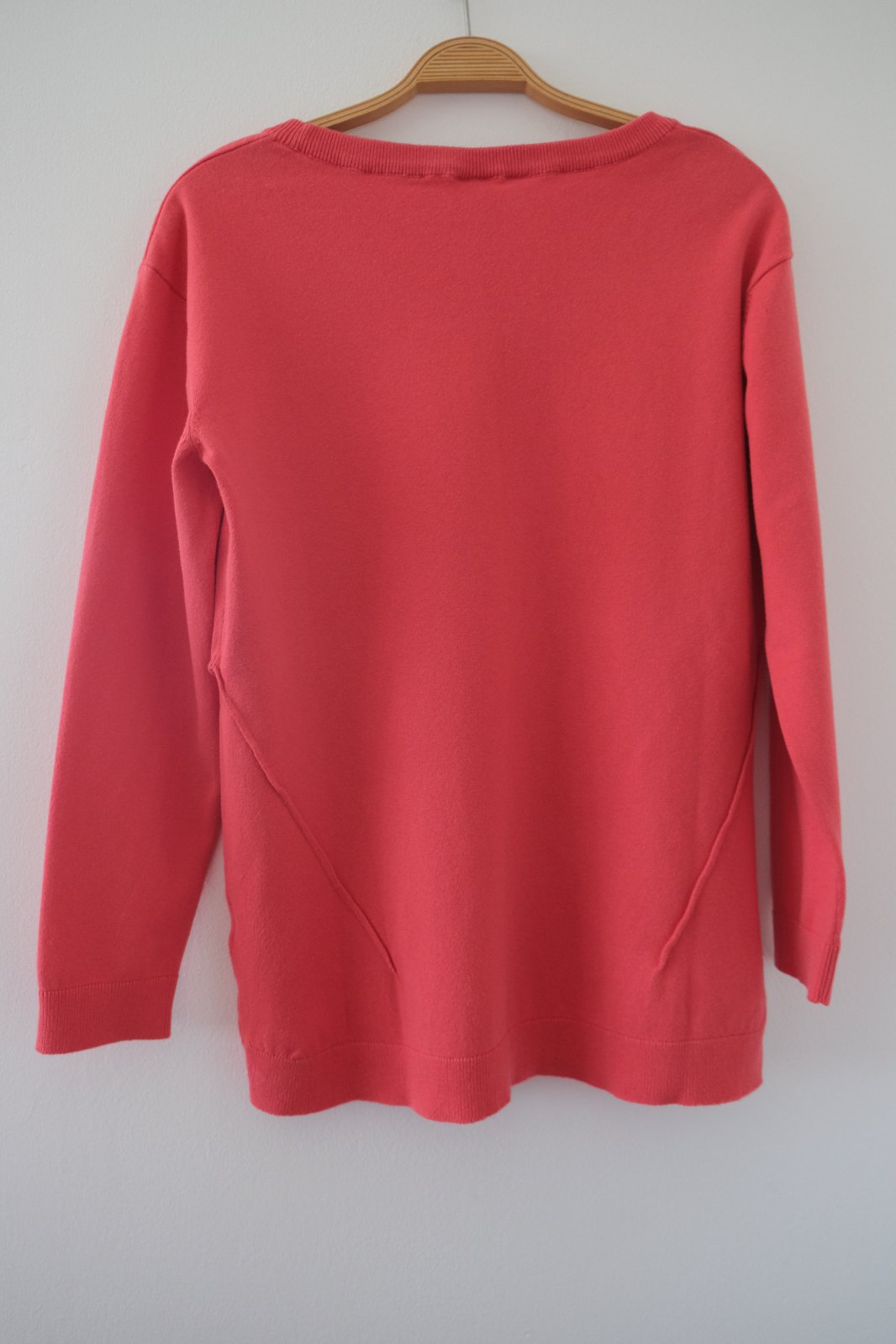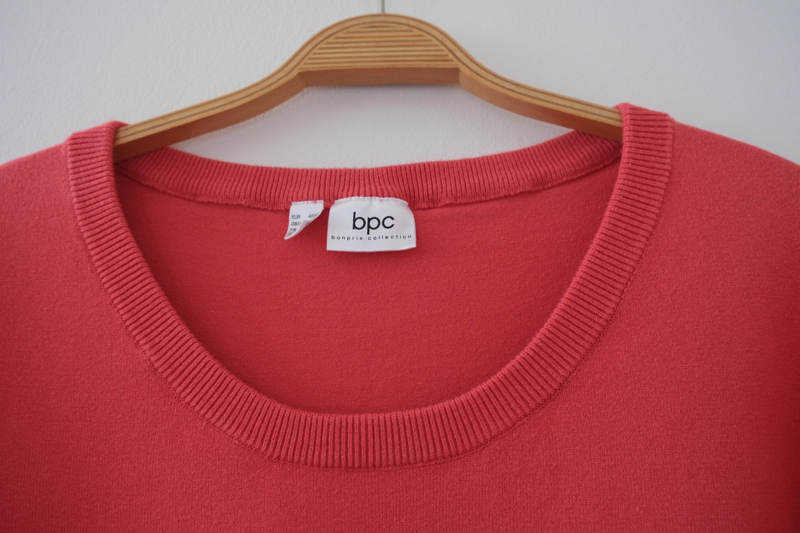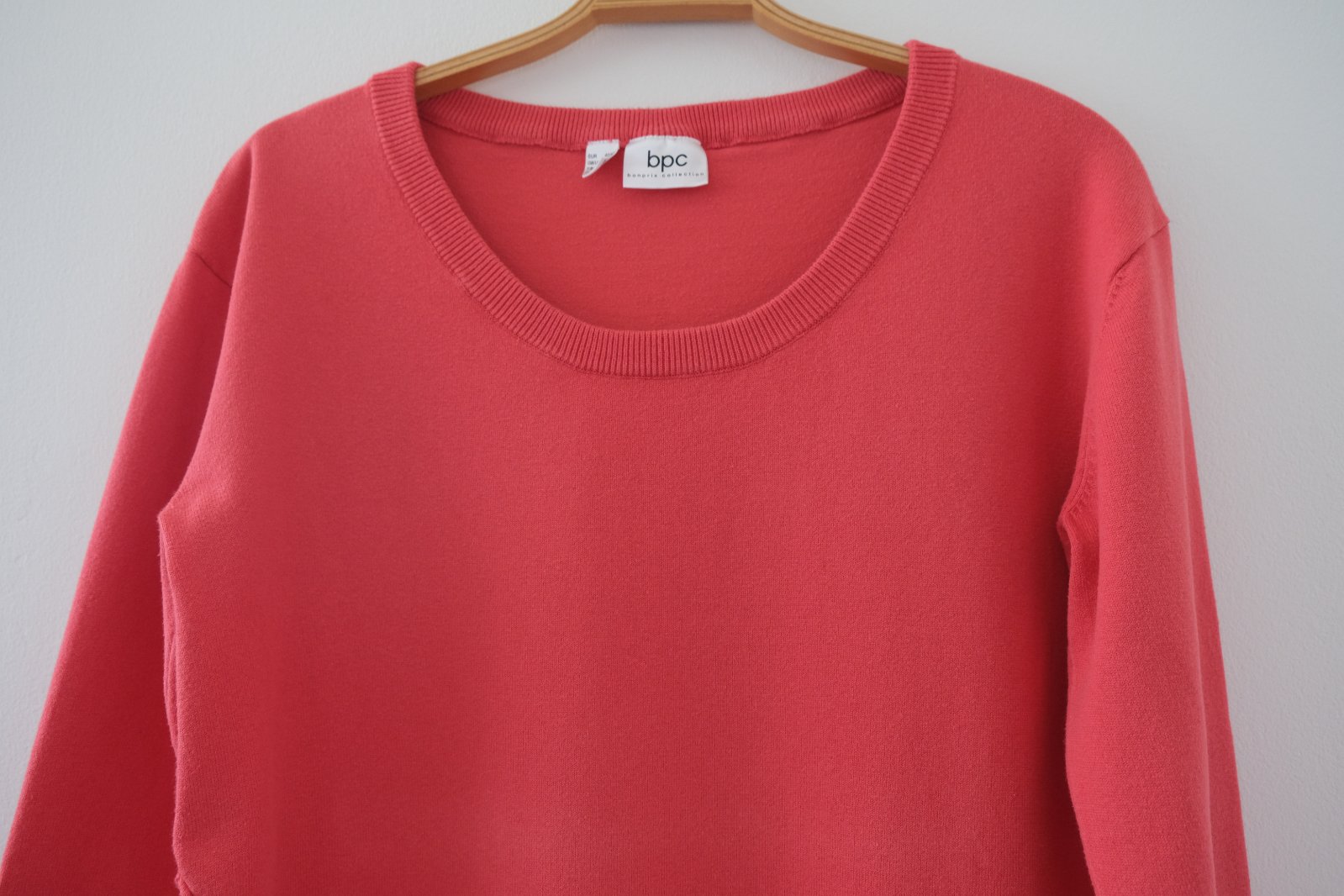🛒 Ružovo červený pulóver guľatý hlbší výstrih.
