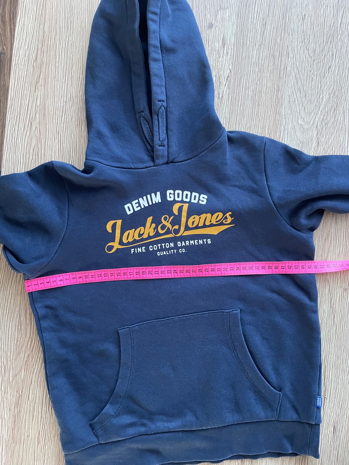 Trendy mikina tmavomodrej farby. V dobrom stave, bez poškodení. Veľkosť uvedená 152 ale je trocha menšia. Rozmery na foto.