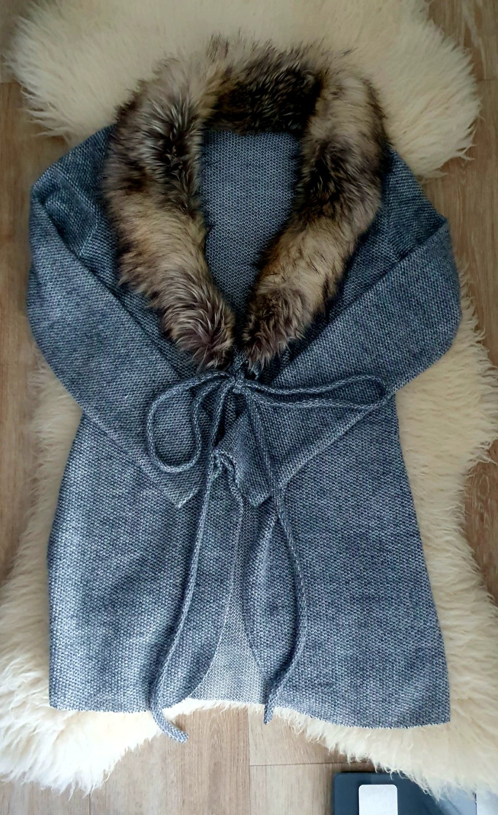 Kardigan na zavazovanie s peknou bohatou kozusinkou
