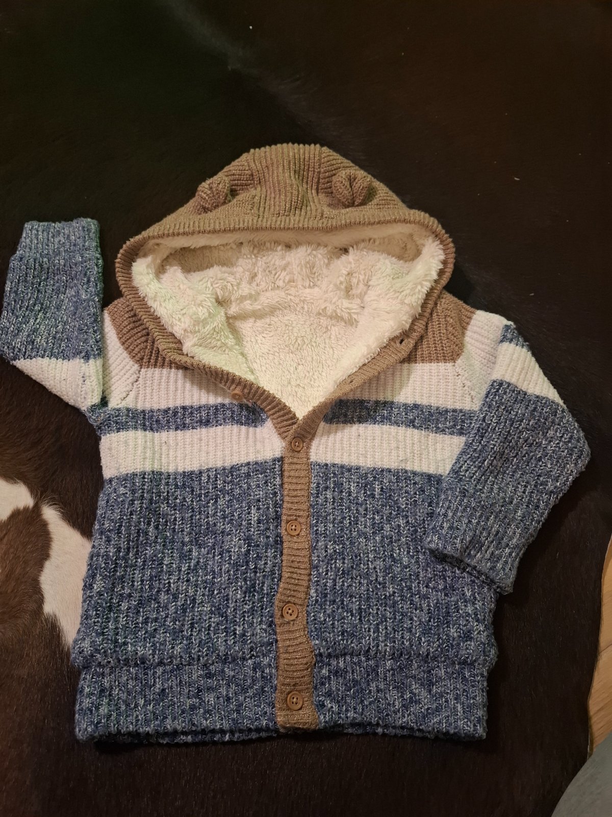 Úžasný svertík, hlavne teplučký vďaka podšitiu kožušinkou. U nás sa veľa nenosil. Je v top stave. Je to dvojčíslo 86-92 (1,5-2 roky)