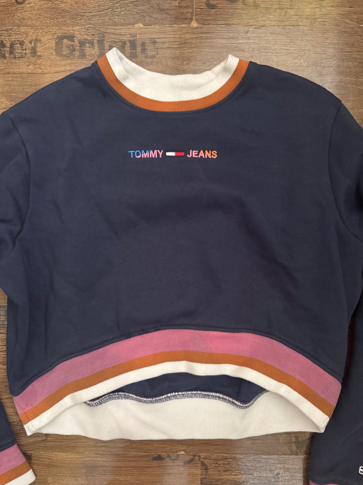 Ponúkam krásnu mikinu originál značky Tommy Hilfiger. Veľkosť je uvedená S ale sedí skôr na XS, prikladám aj rozmery. Mala som ju asi 2x na sebe a pri opraní sa mi z inej mikiny trochu pustila farba, čo sa trošku podpísalo na rukávoch resp. na ružovej ale nie je to nejak viditeľné, možno sa častejším praním vyperie. PC bola vysoká. Poštovné podľa taríf.