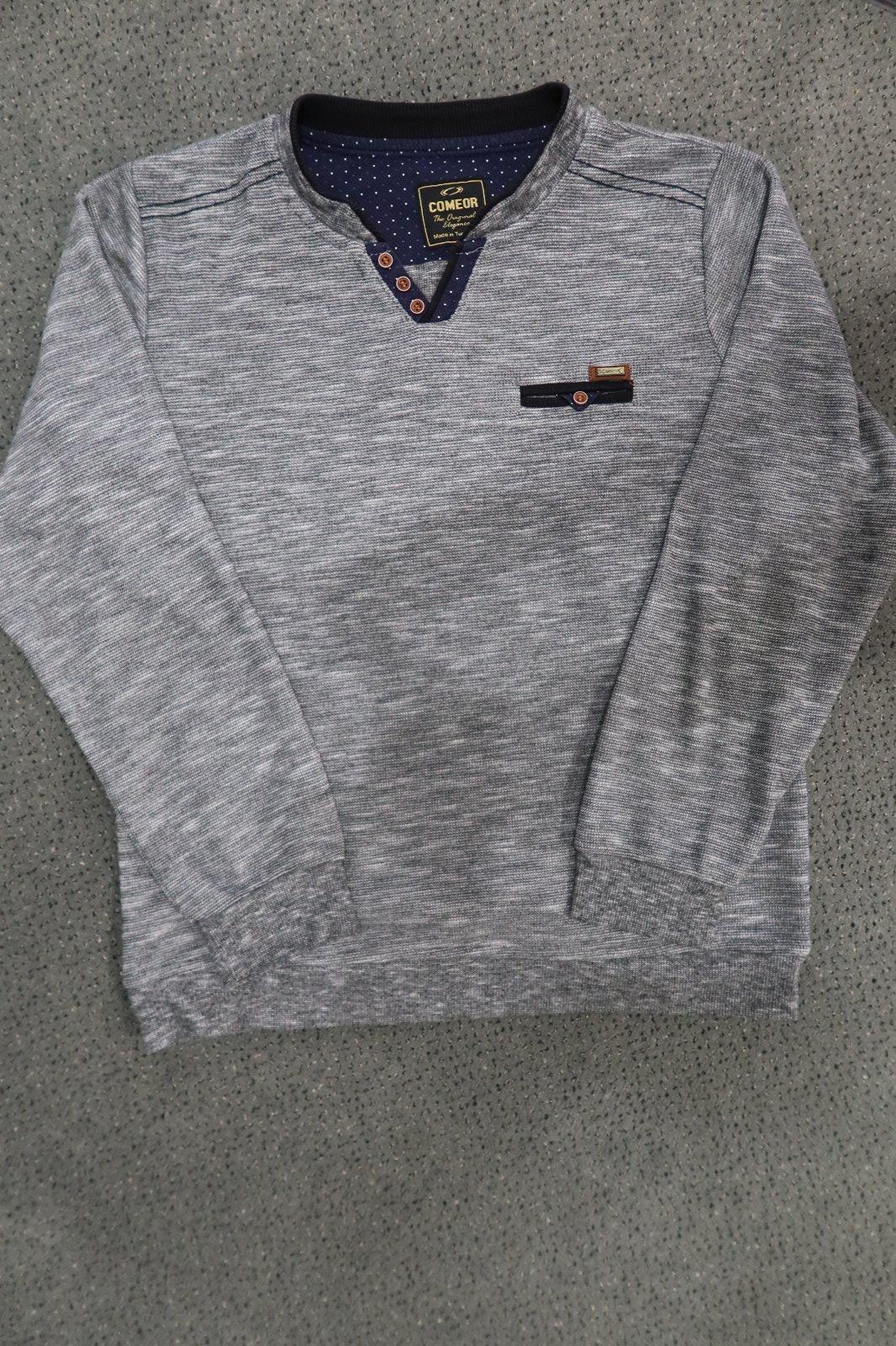 Krásny tenší pulóver vo veľmi dobrom stave bez poškodenia. Kombinácia tmavošedej a čiernej farby. Veľkosť 158/164 na 13-14 rokov.