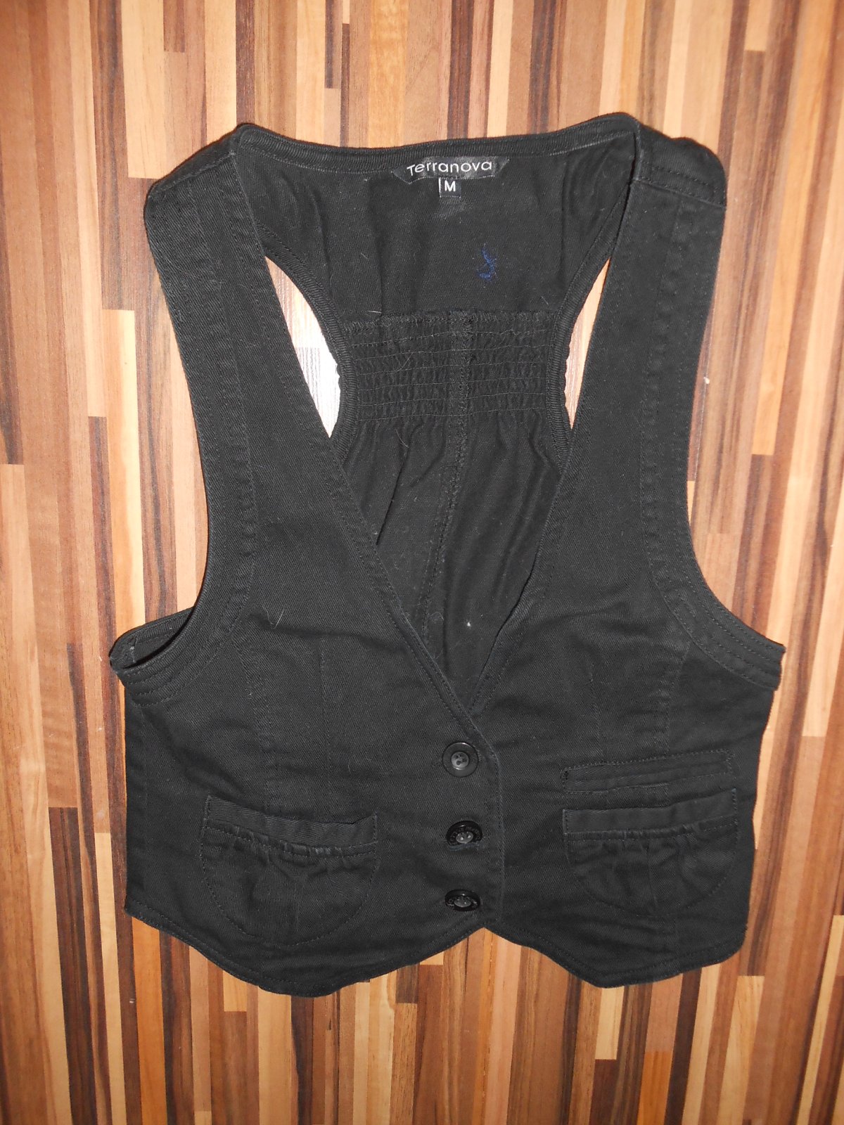 Dámska vesta, značka Terranova, veľkosť M, čierna ako na prvej fotke (nie je vyblednutá, pekná čierna), nosená minimálne, vo výbornom stave, bez vád, dier, dĺžka 49cm, šírka 37cm x 2. Cena + poštovné.(C)