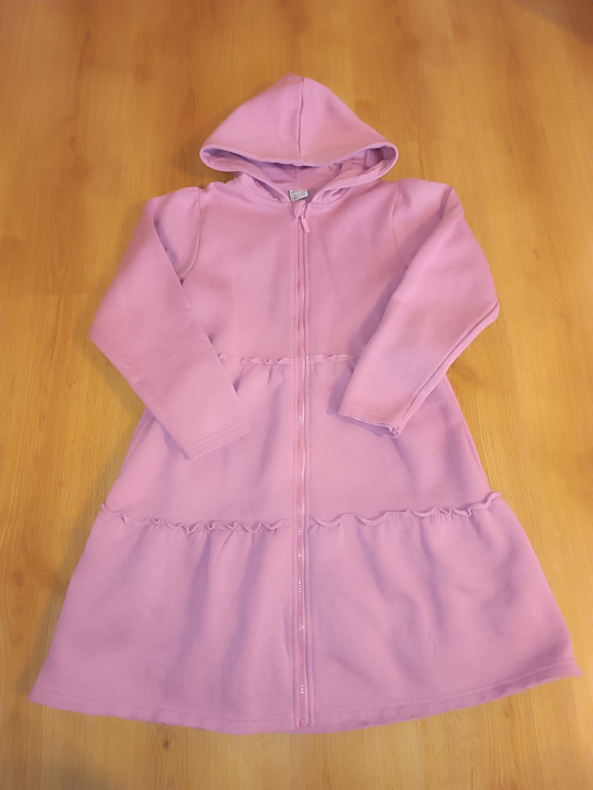 Nosená tepláková mikina, hrubšia so stojačikom. Tmavoružová. Zapínanie na gombíky. Vrecká sú funkčné. Rozmery: pod pazuchami - 45 cm ×2. Zadná dĺžka - 57 cm+ 11 cm stojačik. Dĺžka rukávu- 63 cm vrá...