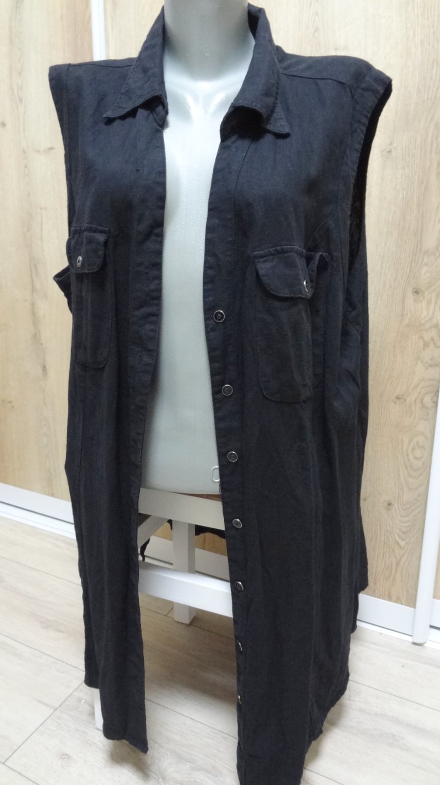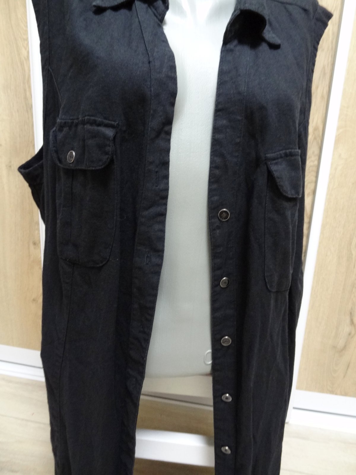 Dámska čierna rifľová vesta ... s vreckami... dobrý stav ... značka: JANINA ... veľ. 2XL - dlžka 85 cm, šírka pod pazuchami 63 cm
